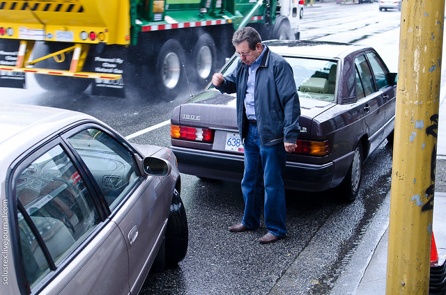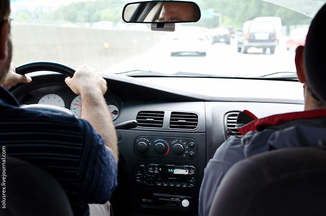 10. Воон та серая машина ждет меня. На работу мы (я и еще пара человек) добираемся на машине одного из коллег. Плюсов на самом деле много. Дело даже не в экономии, просто быстрее. В это время на хайвеях много машин, все едут медленно. А для тех, у кого в машине есть пассажиры, предусмотрена специальная полоса, и по ней мы долетаем до работы вдвое быстрее - минут за 20. Ну и коптим небо меньше, одна машина - это не четыре!