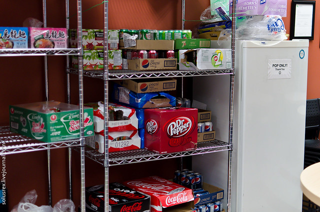 21. Ну плюс к этому компания предоставляет бесплатные напитки, газировку и соки. У нас в детстве ходили байки, по которым в лагере Артек на каждом углу стоял фонтанчик с фантой. Казалось сказкой и не верилось :) Так вот мечты материализуются. Еще есть выбор быстрой лапши ramen. Идея понятна - стоит дешево, хранится вечно, и при желании можно съесть, если так уж приспичило.