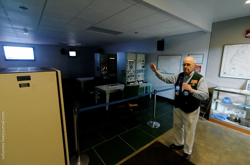 38. Услышав нашу русскую речь, к нам подошел один из волонтеров-экскурсоводов и повел в подземелье - в бункер управления стартом ракеты Титан. Он когда-то служил в таком. Так это вообще боевая ракета,