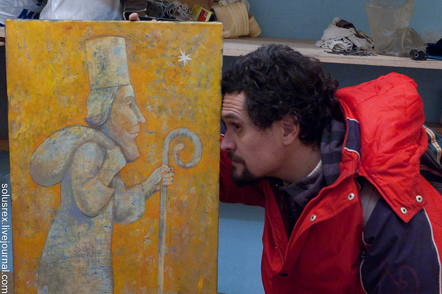 Мой друг художник Миша Пивоваров. Член Союза Художников, выставки здесь и там, работы в коллекциях видных ценителей искусства.
