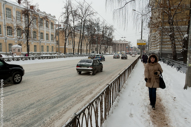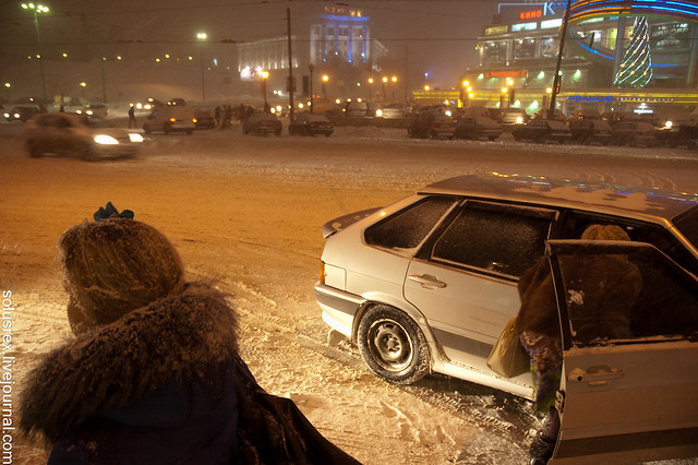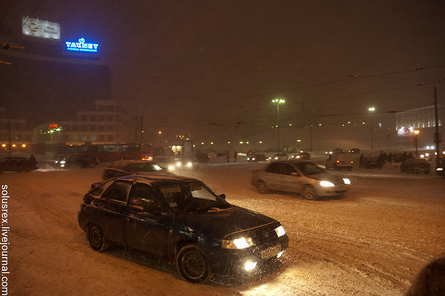 Снег валил все десять дней, пока я там был. Какой-то рекордный год, никогда столько снега не было. Однако народ очень уверенно колесит по заметенным улицам, у нас бы все по домам сидели в такую погоду.