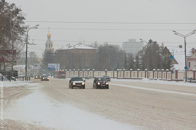 Однако, если честно, то улицы чистили и чистили неплохо. Улица Тукаевская. Тукай - это такой татарский Пушкин.