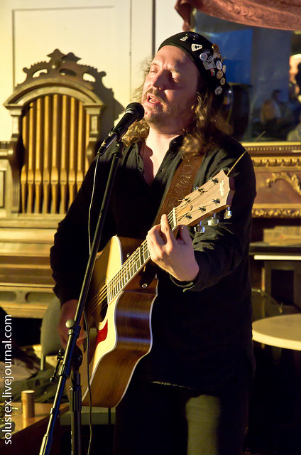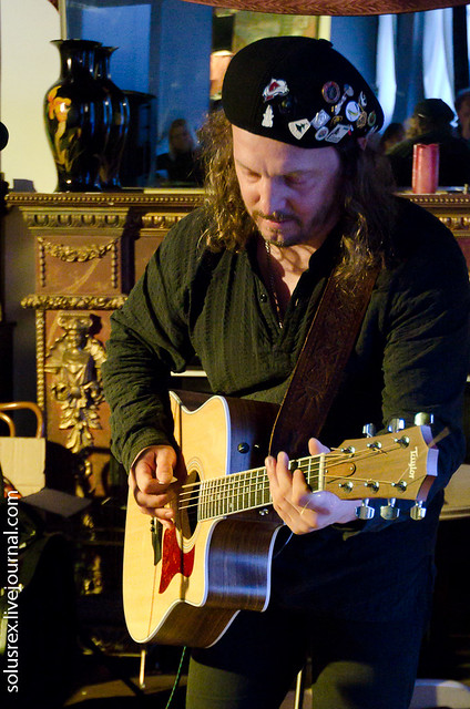 Михаил Башаков известен благодаря каверам "Кто такая Элис" и "Не парься, будь счастлив". Песни сами по себе замечательные... как средство от тоски, если непрерывно крутить в цикле "Не парься", то становится заметно легче... но интересен он другими песнями, и очень глубокими интересными текстами. Некоторые его песни поет Павел Кашин. Поэтому когда я увидел, что он будет выступать у нас, то, конечно, не мог пропустить этот концерт. Концерт получился камерный, по точному замечанию одного из присутствующих "его было так много, а нас - так мало". Совершенно потрясающий вечер.