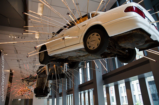 Идея понятна, это как бы фазы полета машины, как будто бы если она перелетала через холл с этажа где продают билеты на этаж ниже, где ресторан и сувенирный магазин. Там она аккуратно паркуется.