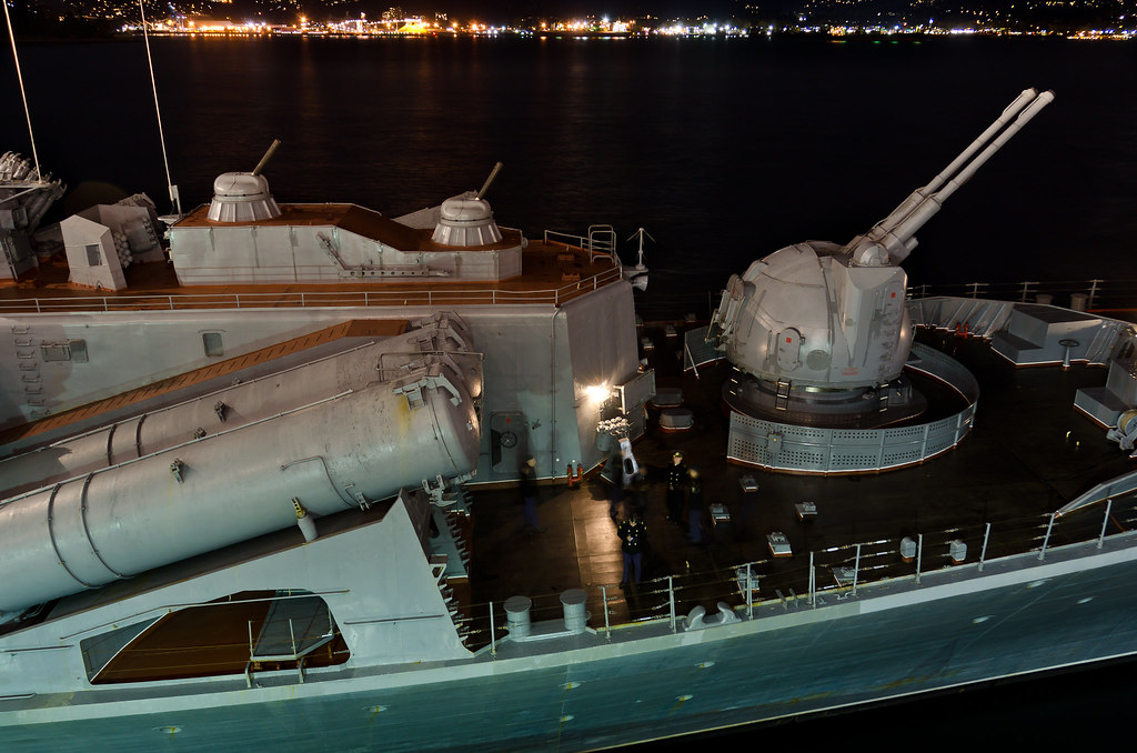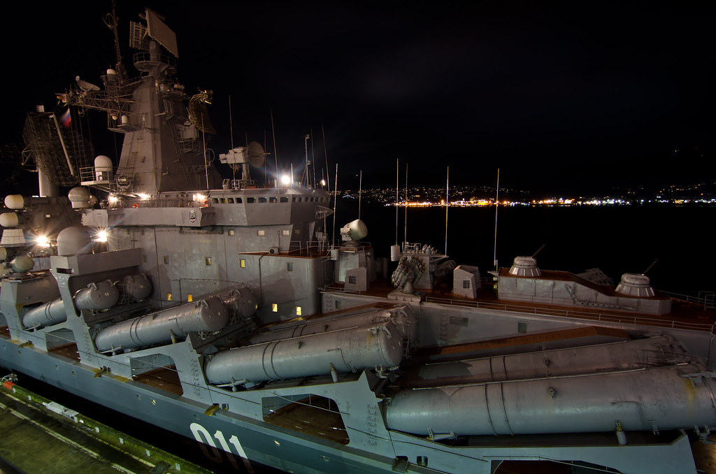 Масштабы Варяга впечатляют. Он несет на борту 8 ЗРК С300 и 16 пусковых установок противокорабельного комплекса «Вулкан». Я со знанием дела объяснял окружающим что это за трубы