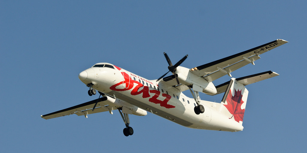 Jazz - это дочерняя компания Air Canada, занимается местными авиаперевозками. Bombardier Dash 8.