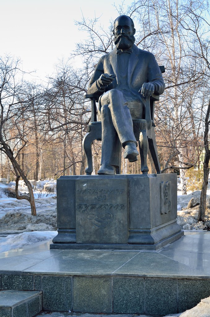 54. Памятник химику Бутлерову. Летом шутники любят вставлять ему в правую руку бутылку колы или чего покрепче.