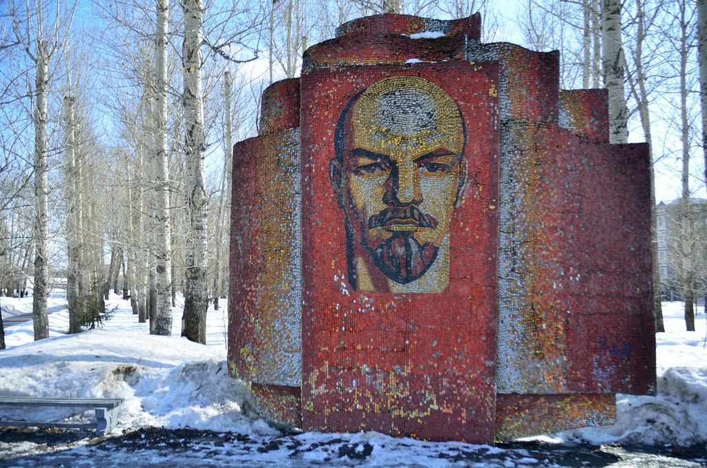 62. В одном из парков сохранился мозаичный портрет дедушки Ленина с каким-то фонариком во лбу.