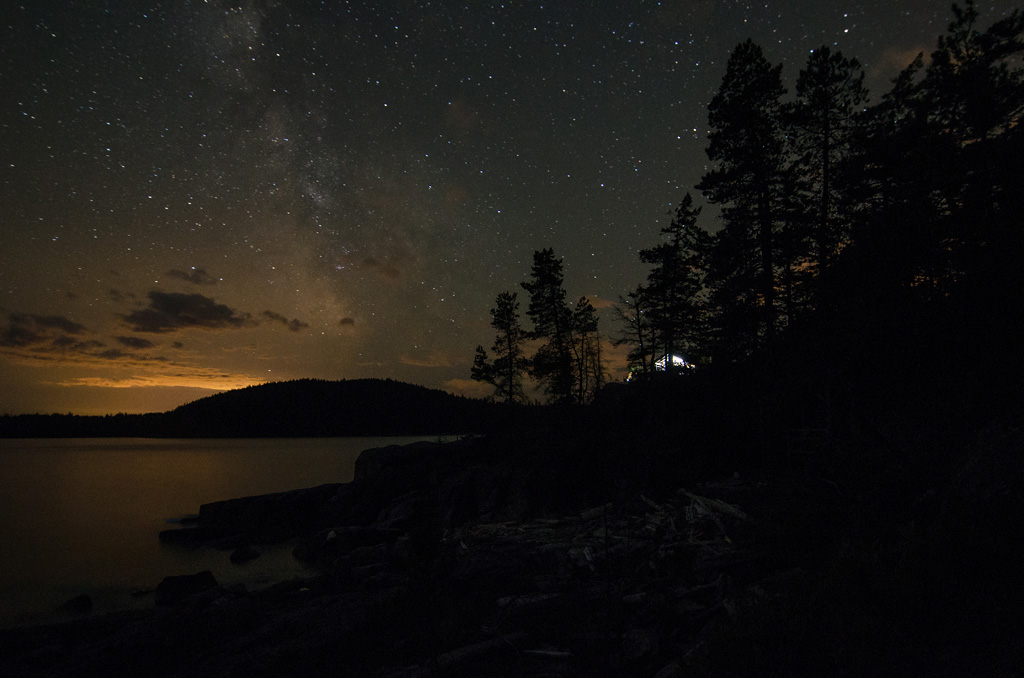 Млечный путь. За елками светится один из наших домиков.