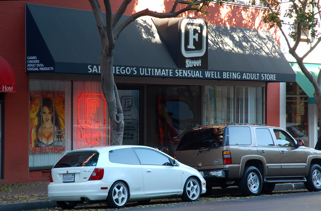 27. Авеню, идущие с север на юг, в центре города пронумерованы цифрами, а улицы - буквами. Секс-шоп поставили на улице под названием F, что также созвучно со всем известным словом на букву f, и в итоге получилась F-street со вторым смыслом,