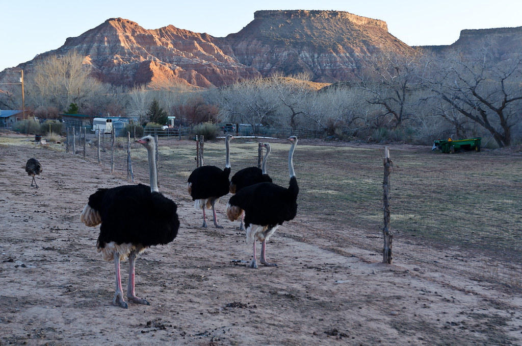 34. Возвращаясь в Лас-Вегас... вот какой шанс встретить страуса в степях Юты? 50 на 50 - или встретишь или нет. А страусы таки вот были.