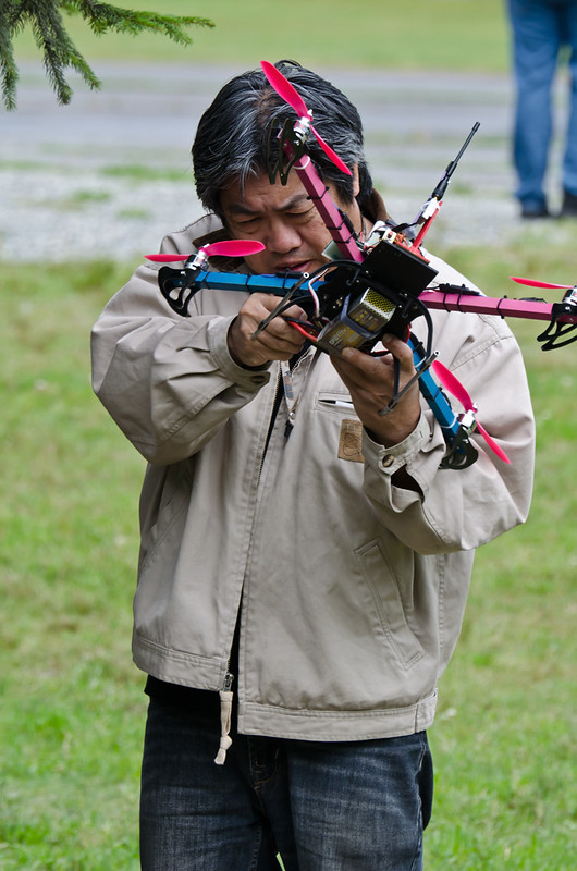 Ну что сказать. Вдохновляет! Хочется немедленно засесть за изготовление чего-то похожего. Это же идеальный штатив для фотоаппарата, где хочешь, там и ставишь, да хоть бы и где-то в воздухе. Но разве это занятие, достойное мужчины? Кстати, а что такое Мужское Достойное Занятие, при условии добытых в достаточном количестве Денег и Мамонтов, построенных Домов и выращенных Деревьев? Может, это пиво с соленой рыбой под футбол, или, скажем, ремонт карбюратора в гараже? Если это так, то чем оно принципиально отличается от постройки вертолета?