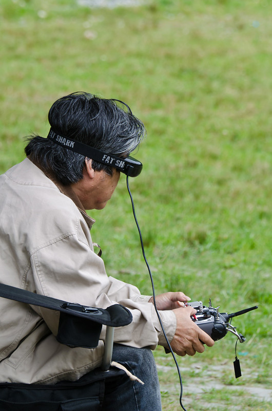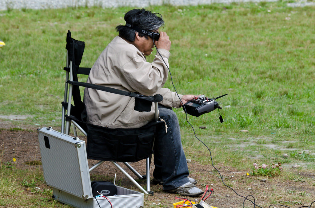 А вот и сам оператор. Он все видит через свои видеочки с перспективы своего летающего аппарата, как бы находясь на нем.