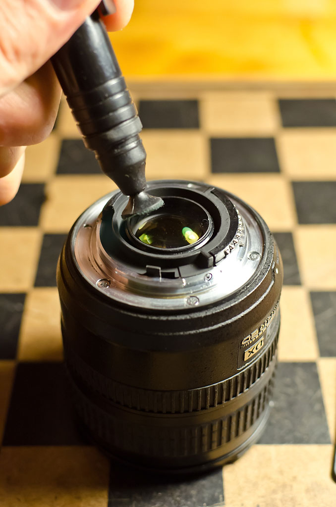 24. Чистка задней и передней линз. Нет нужды говорить, что процесс должен происходить в чистом помещении (мое таковым не является), и что под рукой полезно иметь баллон сжатого воздуха, чтобы выдувать пыль из объектива.