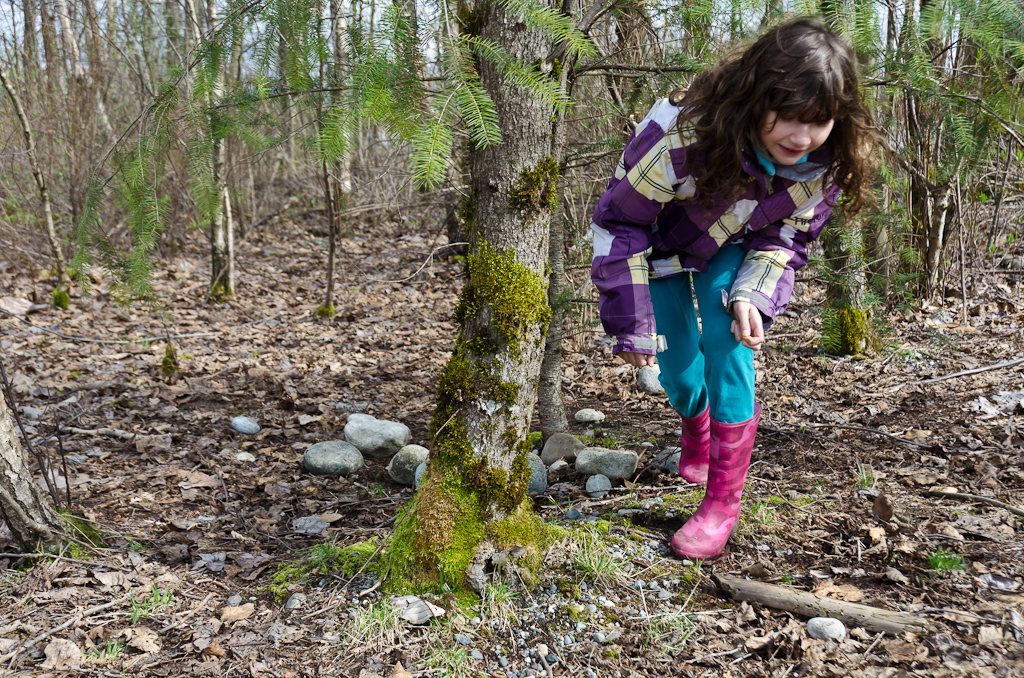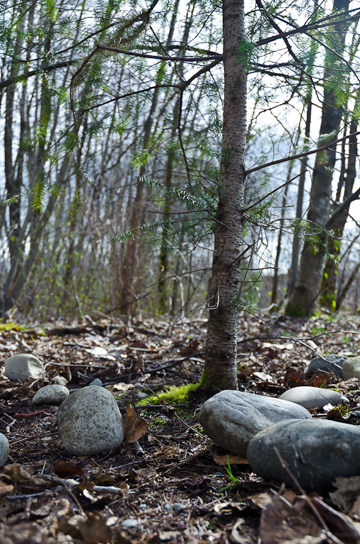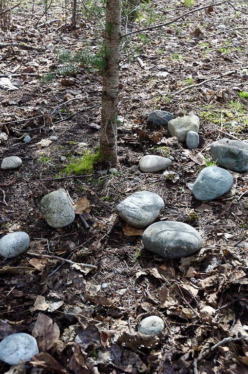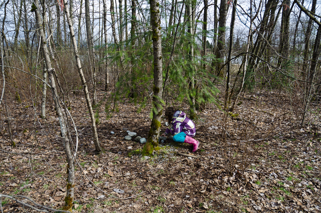 Ищем вокруг нее, ничего не видно. Смотрим под камнями, под ними тоже ничего нет.