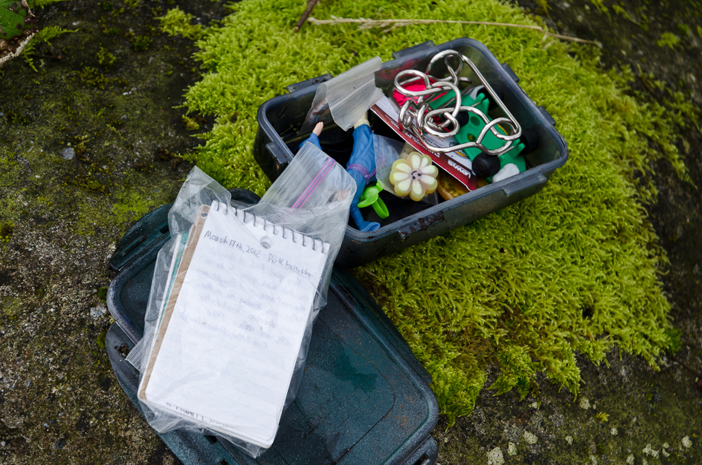 Итак, есть множество пиратов энтузиастов геокэшинга, и они в разных уголках планеты спрятали небольшие коробочки, контейнеры, капсулы. Этих кладов - около двух миллионов, они есть по всей планете на всех континентах. Один, говорят, даже летает на МКС в космосе. В интернете есть некая база данных, в которой собраны GPS координаты всех этих кладов, так называемых геокэшей, их описания и журнал, в котором ведется лог. Цель, вообщем-то простая - используя GPS найти геокэш в реальном мире и занести это событие в книжечку журнала геокэша, дескать "здесь был Вася", а также поведать об этом всему миру, добавив сообщение в лог в интернете. Что окажется в геокэше - никогда не знаешь заранее. Но, как минимум, там должен быть журнал, куда надо записаться. Очень часто помимо лога, в кэше оставляют мелкие сувениры, и тогда можно положить в него что-то от себя, и вместо него взять другой. Часто бывают монеты, мелкие игрушки, значки итп. Сувенир - вещь не обязательная, но делает процесс еще более интересным для детей. Кроме того, рекомендуется закладывать кэши в местах, которые представляют исторический, природный, географический, культурный интерес. Поэтому сам процесс поиска становится весьма познавательным.