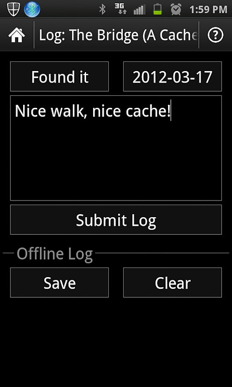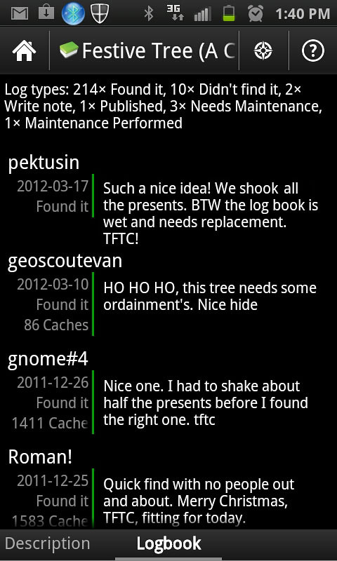 Теперь надо отправить наш лог на сайт geocaching.com, и наш счетчик побед увеличится на единичку. Делаем это прямо из программы c:geo.