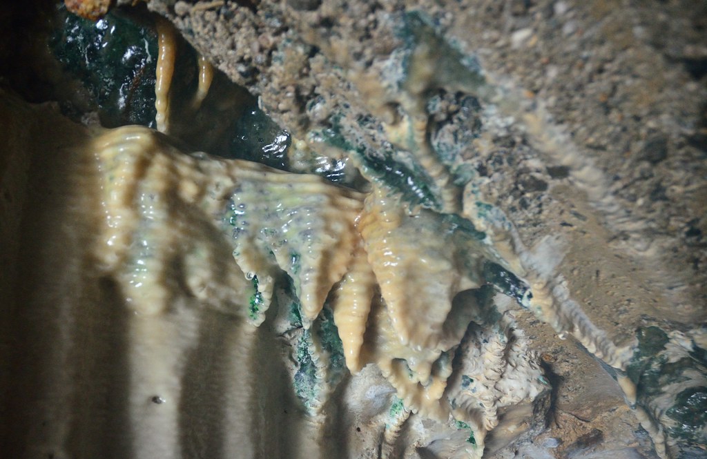 В пещере жарко и очень влажно, постоянно что-то капает и льется с потолка, вода сладковатая на вкус, но без запаха сероводорода.