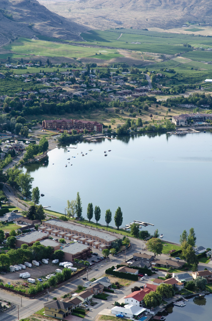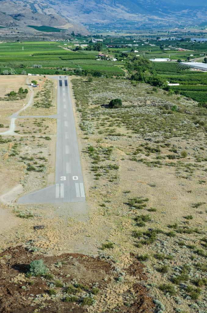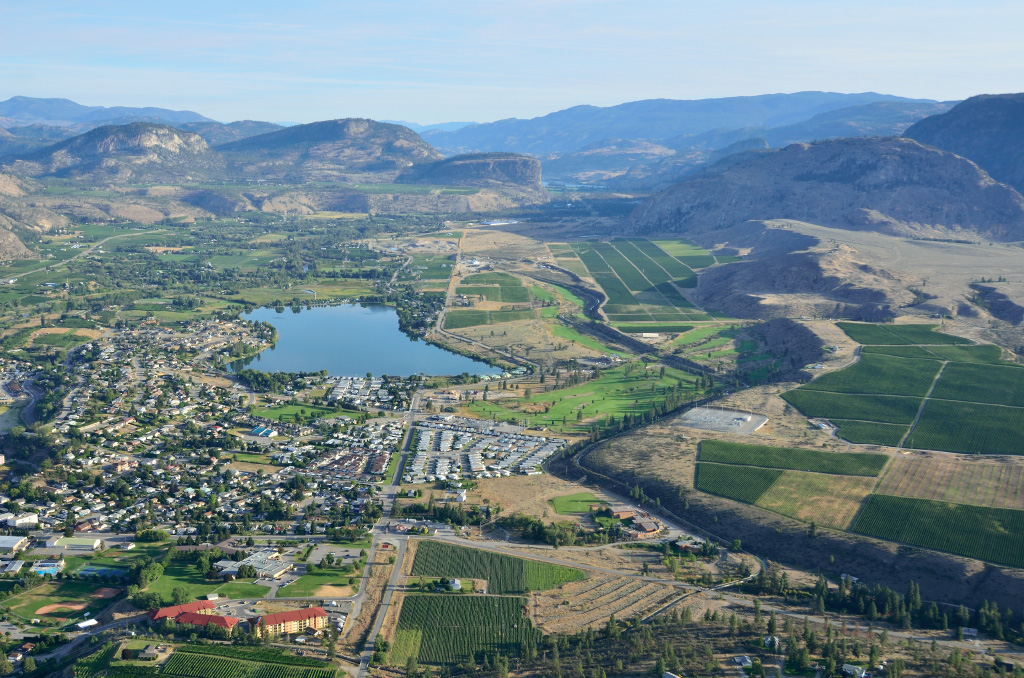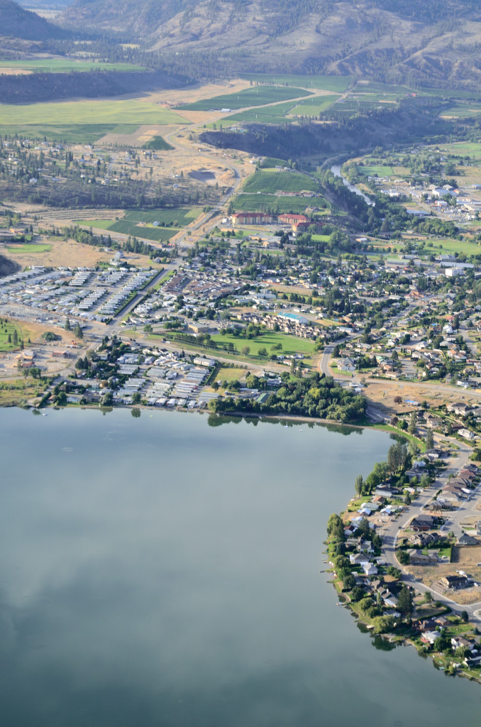 А это расположенный к северу от озера городишко Оливер. У них чудная взлетка, но чтобы там приземлиться, надо иметь радио, которого у нас, воздушных гопников, конечно же нет.