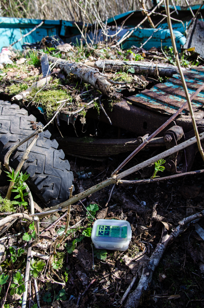 Там же нашли еще один геокеш, а в нем - травел баг. Конкретно этот был запущен когда у кого-то там родился ребенок, и вот уже восемь лет баг путешествует от кэша к кэшу, а ребенок растет.
