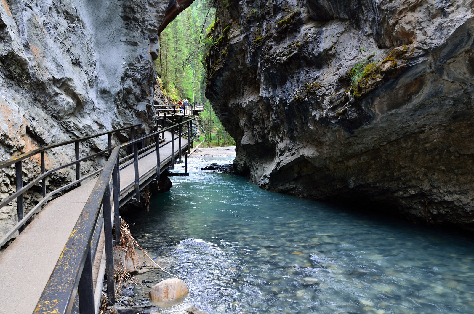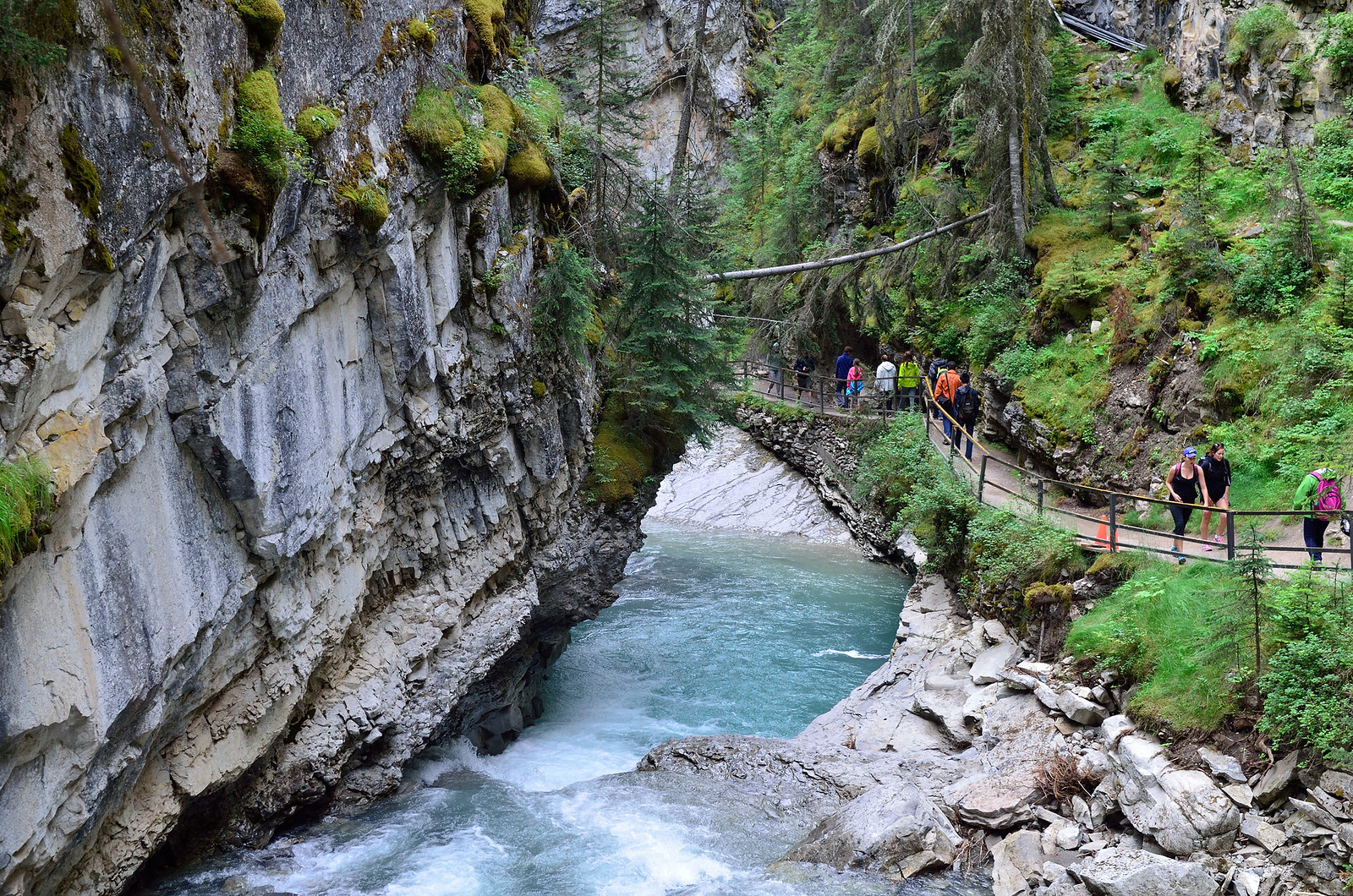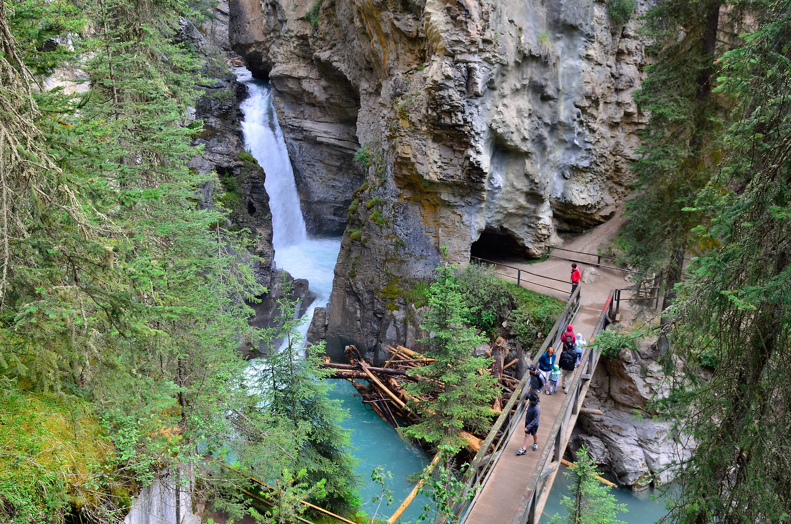 Итак, в предыдущей части мы оставили наших героев мирно спящими в номере гостинцы в Банффе. Утром они встанут пораньше и поедут в Johnston Canyon. То, что пораньше - вообще очень правильная идея. Остальной народ подтягивается часам к 10-ти и сперва долго ищет место на парковке, потом толкается на трейле в толпе таких же как он любителей поспать. Мы же в это время уже шли обратно.