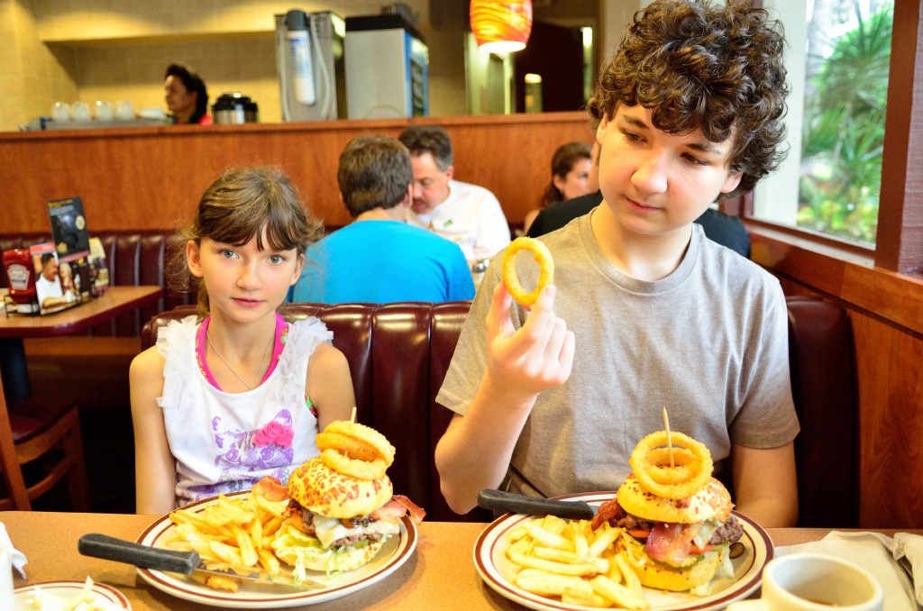 So far today, we woke up early, quikly changed, and headed to the same beach to swim for the last time. Then we changed and went to our hotel to take showers, and I started writing this. Then we went to Denny's and ordered some lunch. Well, they should get us food soon or we will be late. Anyways, I am waiting right now for it.
