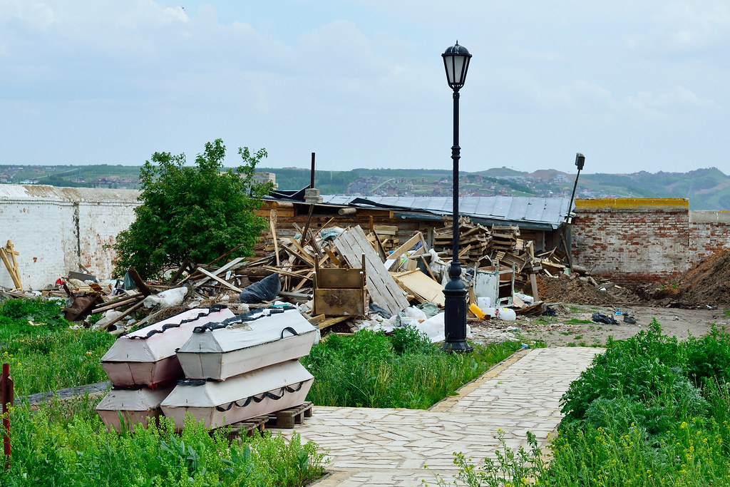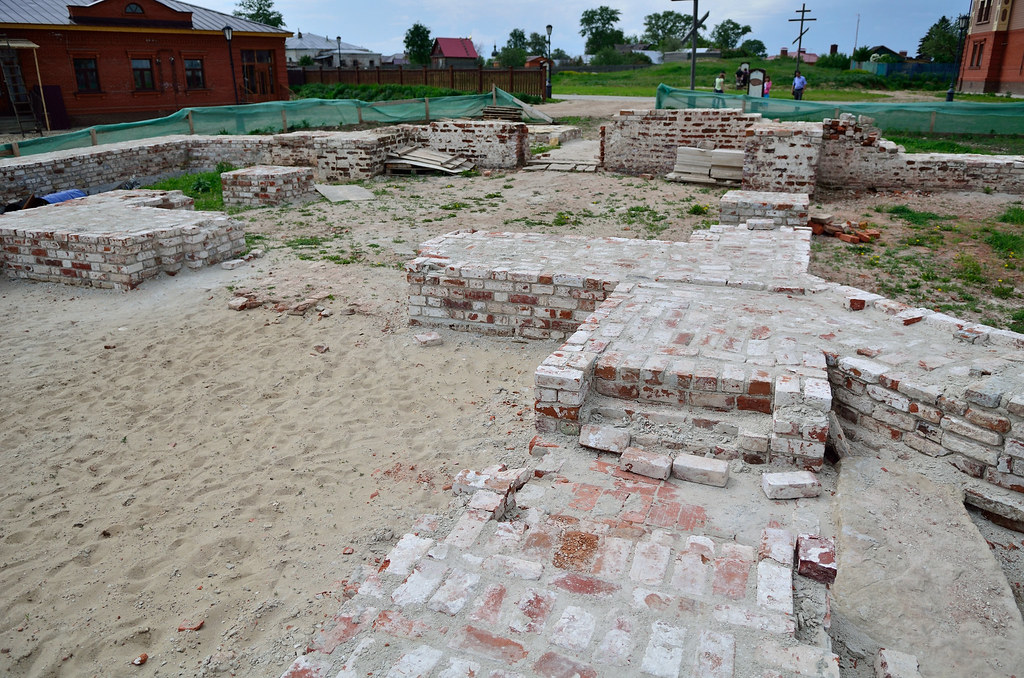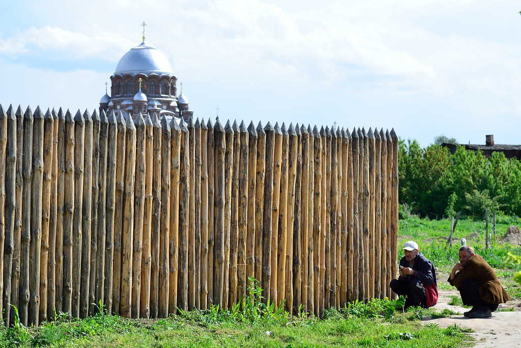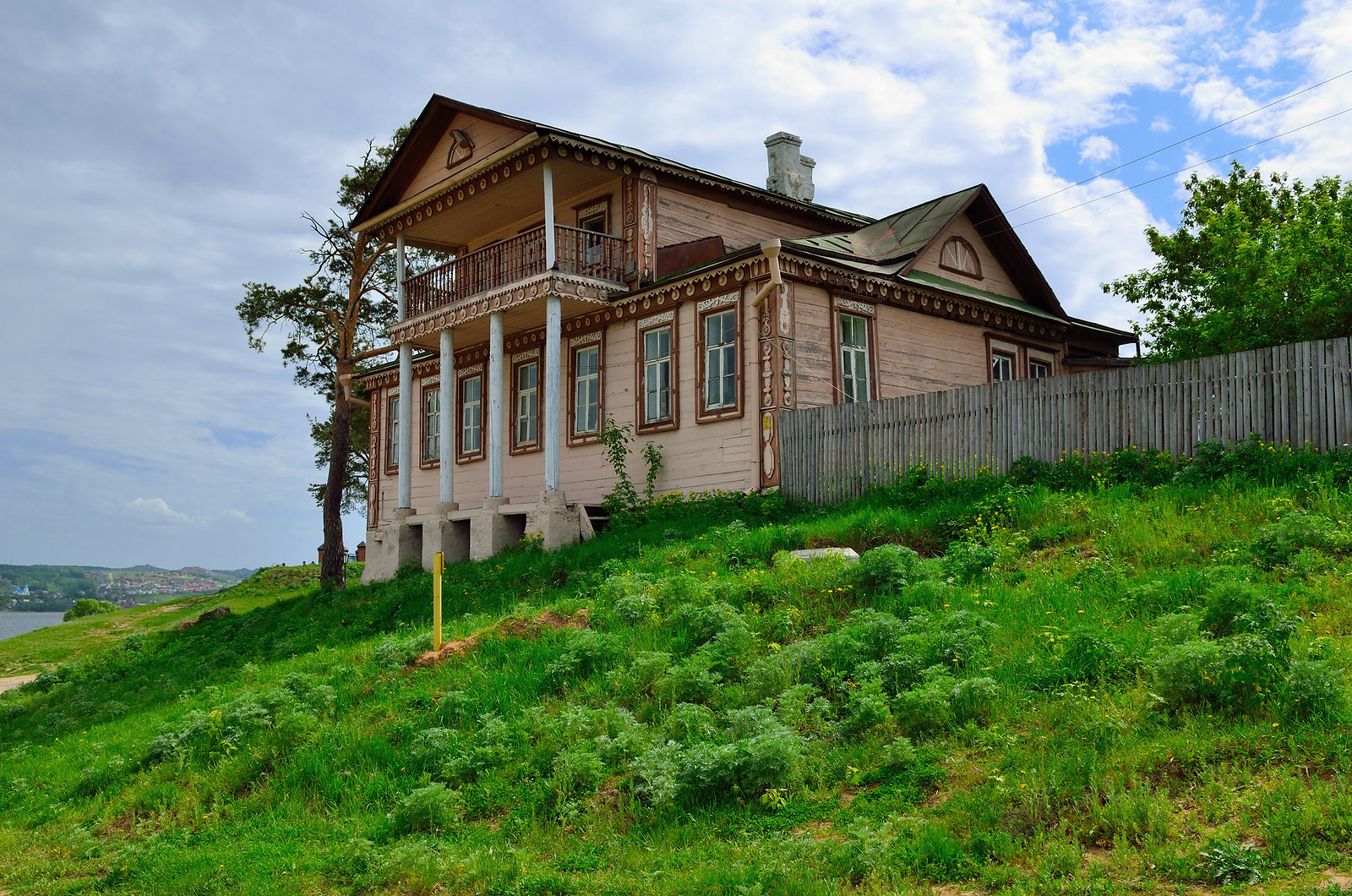 Раньше здесь ниже был целый город. Потом Волгу перегородили плотинами, она разлилась и затопила землю. Говорят, под водой там целые улицы, вода хорошо сохраняет дерево. Есть проекты огородить это место и осушить, сделав музей под открытым небом.