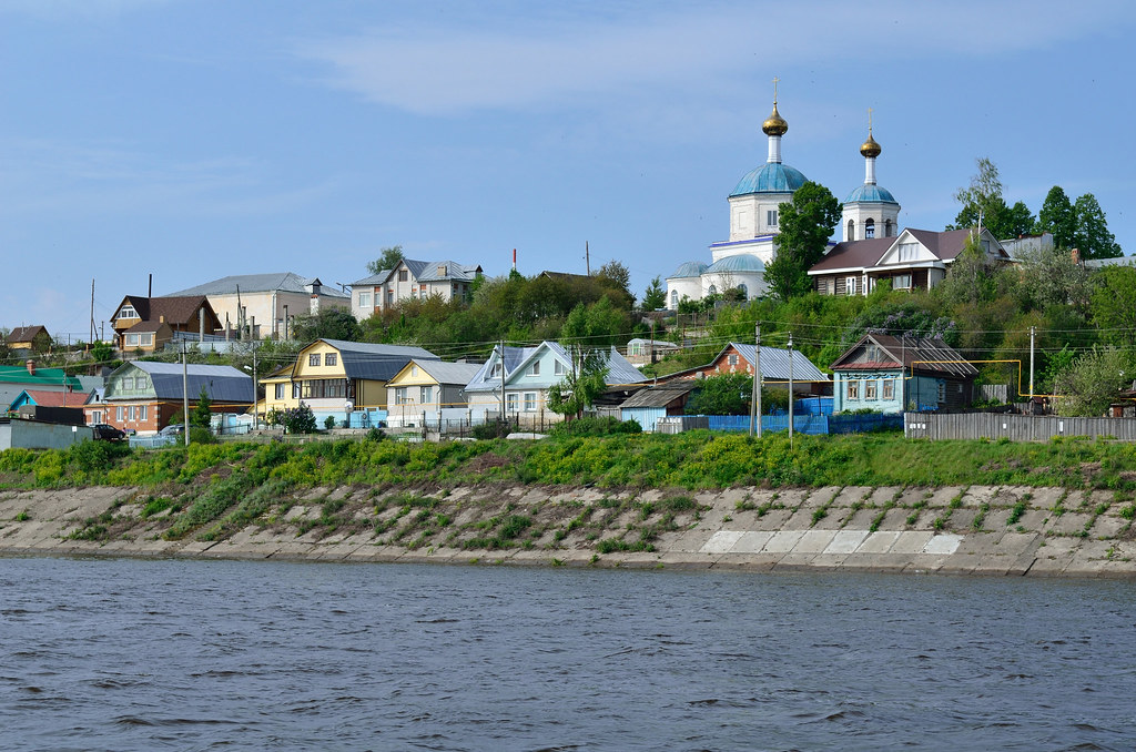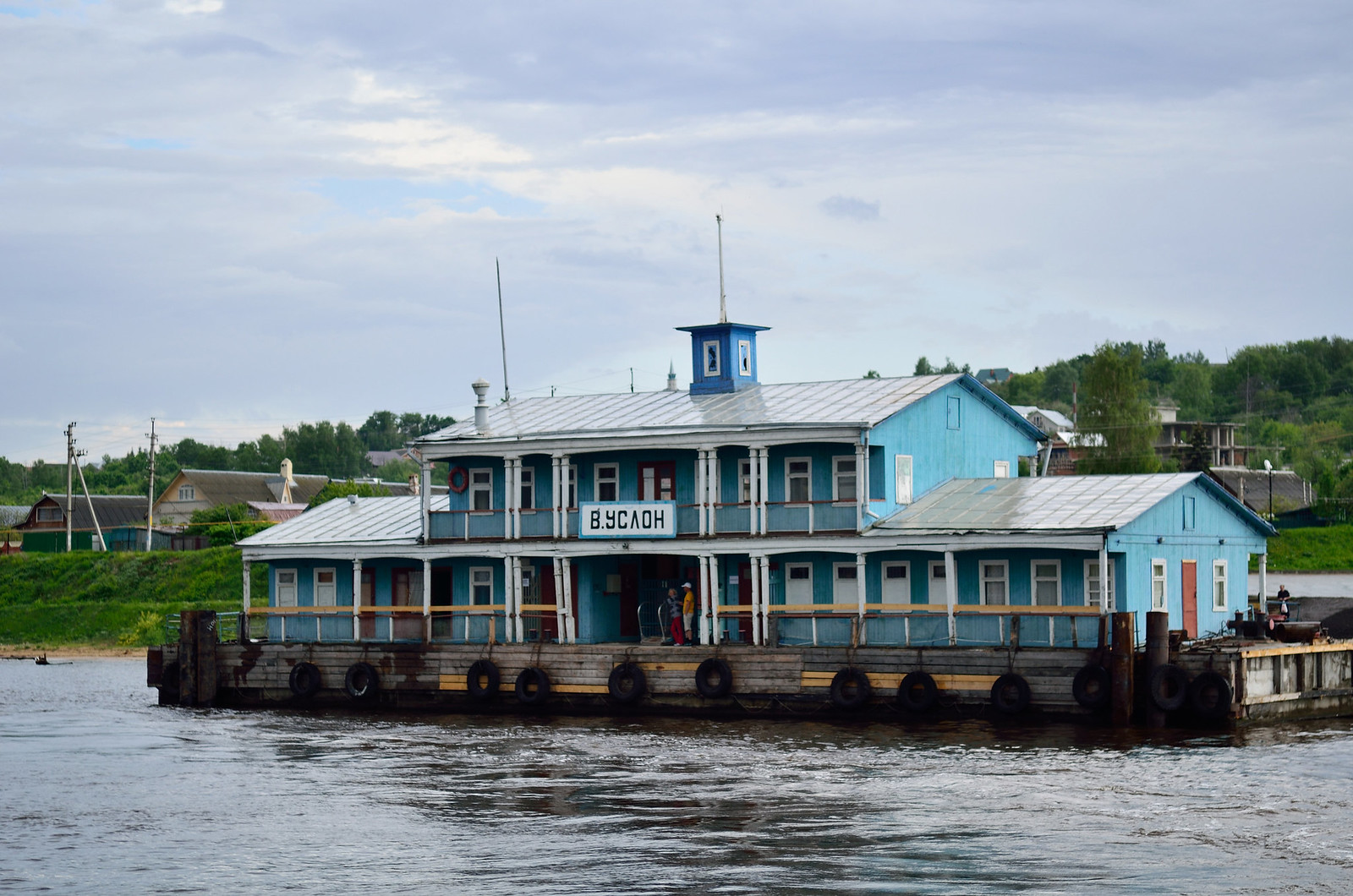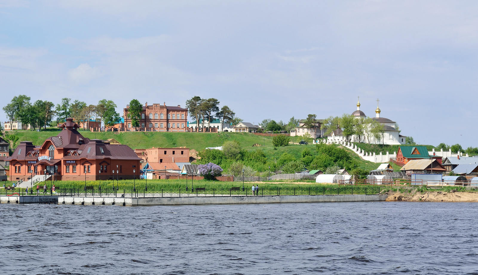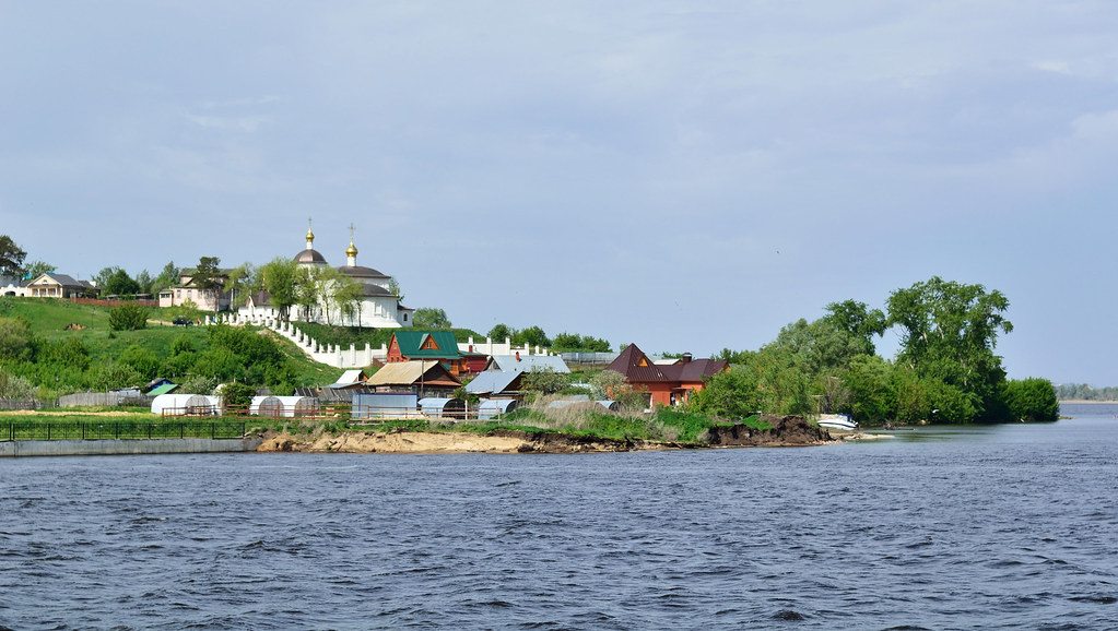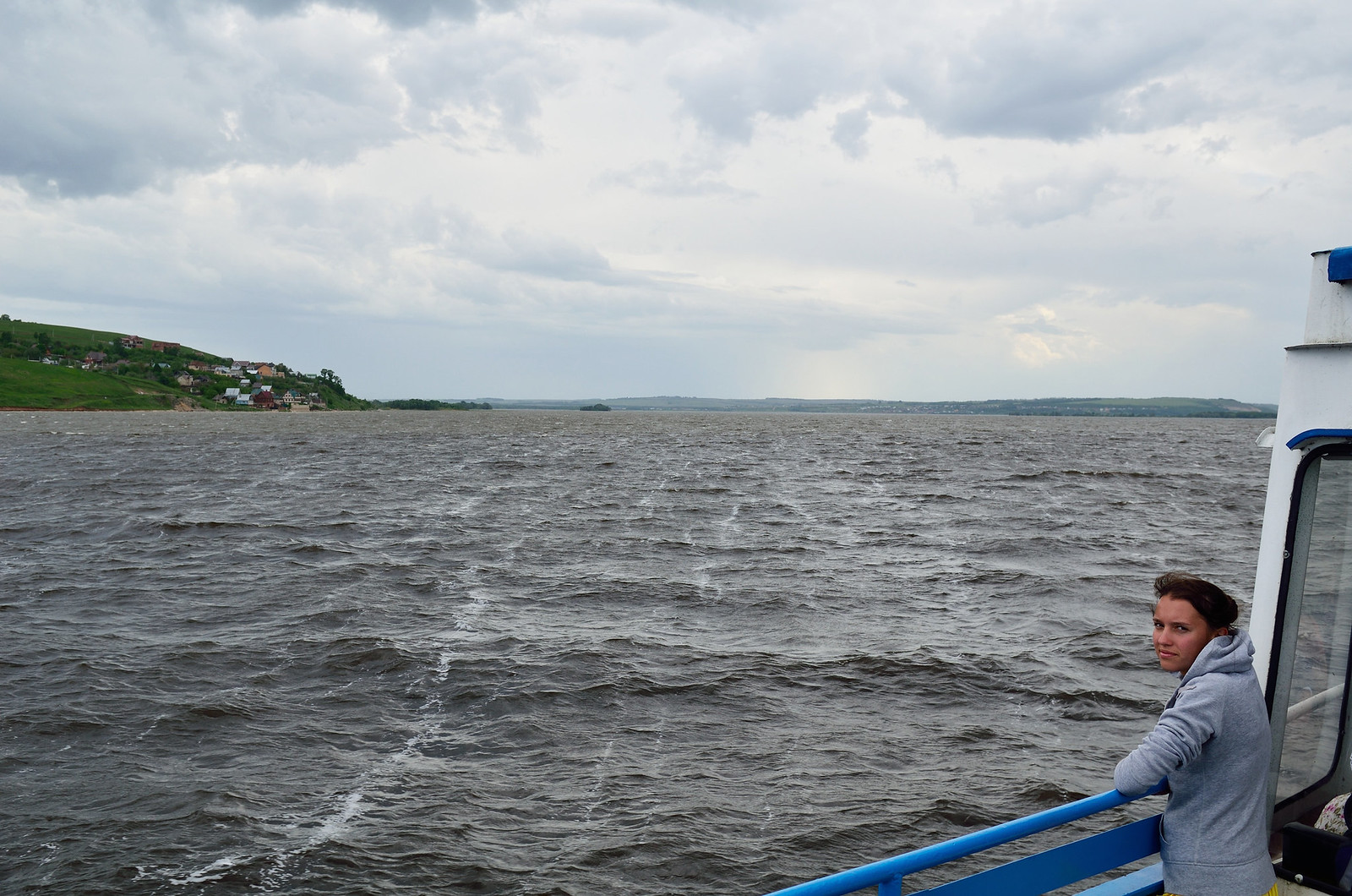 Первым делом теплоход переплывает к противоположному берегу Волги к поселку Верхний Услон. Есть еще и Нижний Услон, он и по течению ниже, и берег там пониже, и дома ниже, и вообще все не так, как в Верхнем.