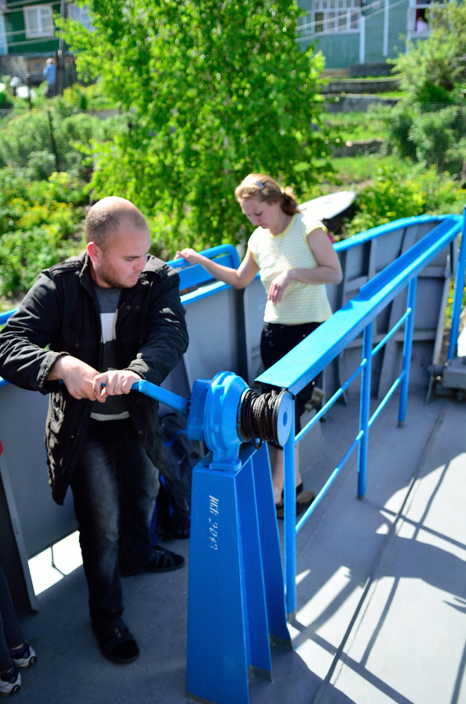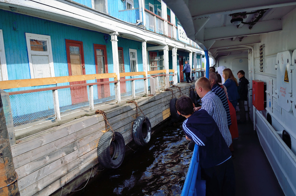 Корабль почему-то игнорирует новенькую красивую пристань и привычно тыкается носом в берег.