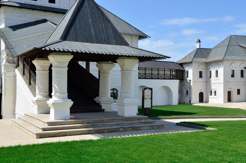 Свияжск - остров выше по течению Волги, откуда царь Иван Грозный сперва грозил Казани, а потом несколько сотен лет жили монахи в двух монастырях - в Иоанно-Предтеченском и Свято-Успенском монастырях. В советскую власть коммунисты вдоволь поглумились над этим местом, устроив там сперва филиал Гулага для политзаключенных, а потом - психбольницу. Потом пришло запустение, и только относительно недавно остров стал возвращаться к нормальной жизни.