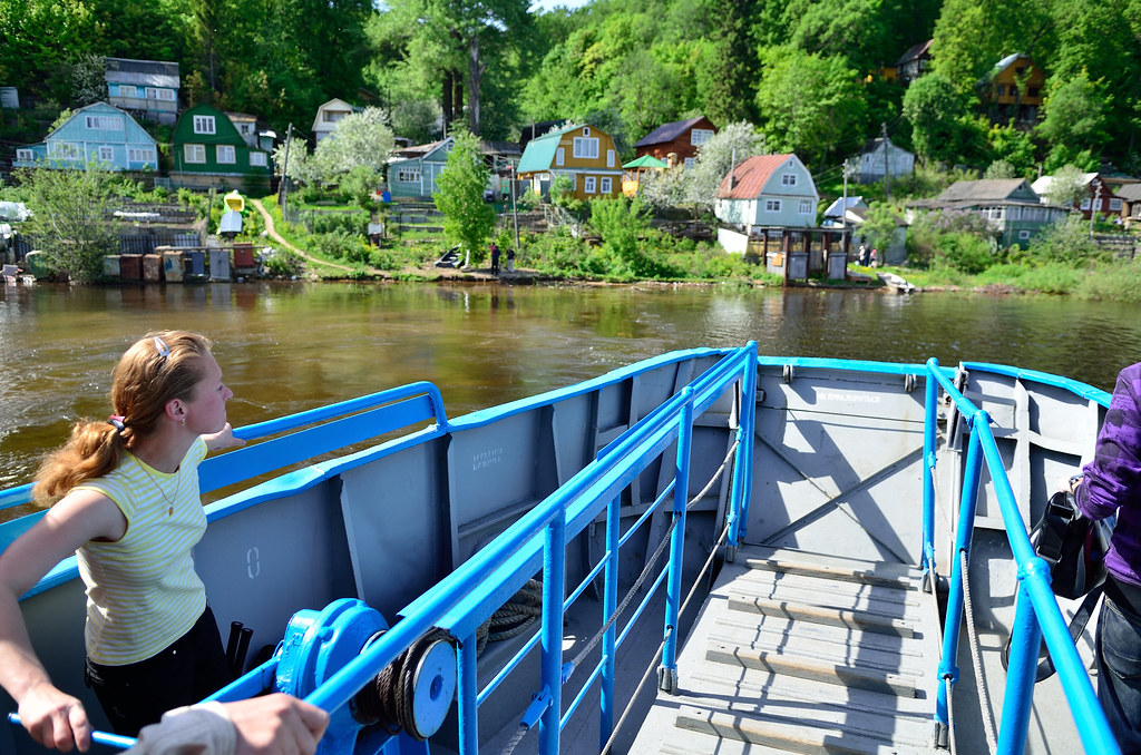 Краткая остановка у какого-то садового участка. Теплоходик просто ткнулся носом в берег и опустил трап. Советую круизным лайнерам перенять опыт, а то морские вокзалы, порты... Ткнулся носом в какой нибудь из Кайманских островов, и все пассажиры скоро будут на берегу!
