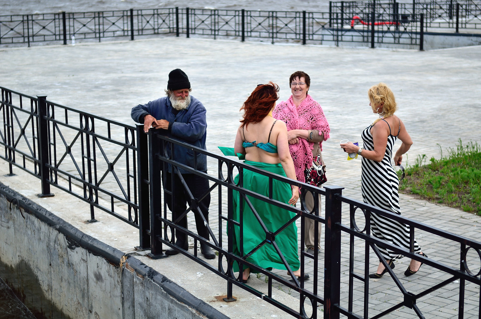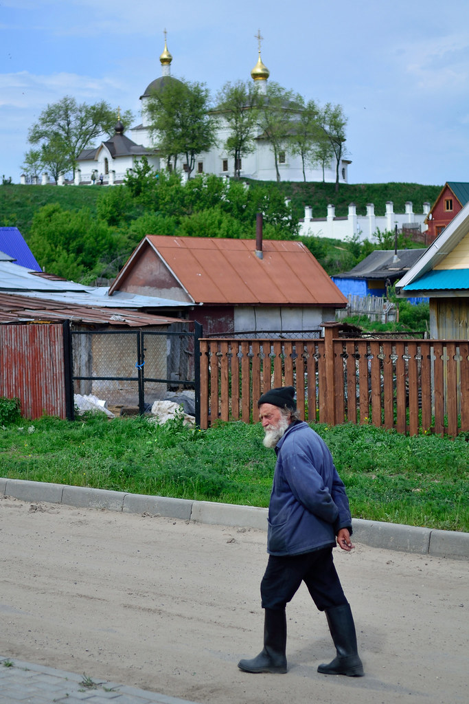А вот и он, тот самый "кто сторожит баржу". Это он встречал нас на пристани. Борис Борисович Гребенщиков со своим ансамблем были частыми гостями в этих местах, и именно этот старичок послужил прототипом герою одноименной песни. И это он встречал на пристани нашу баржу. На мою попытку сфотографировать его, он повернулся и показал мне кулак. Но мы все же разговорились с ним, если это можно так назвать.