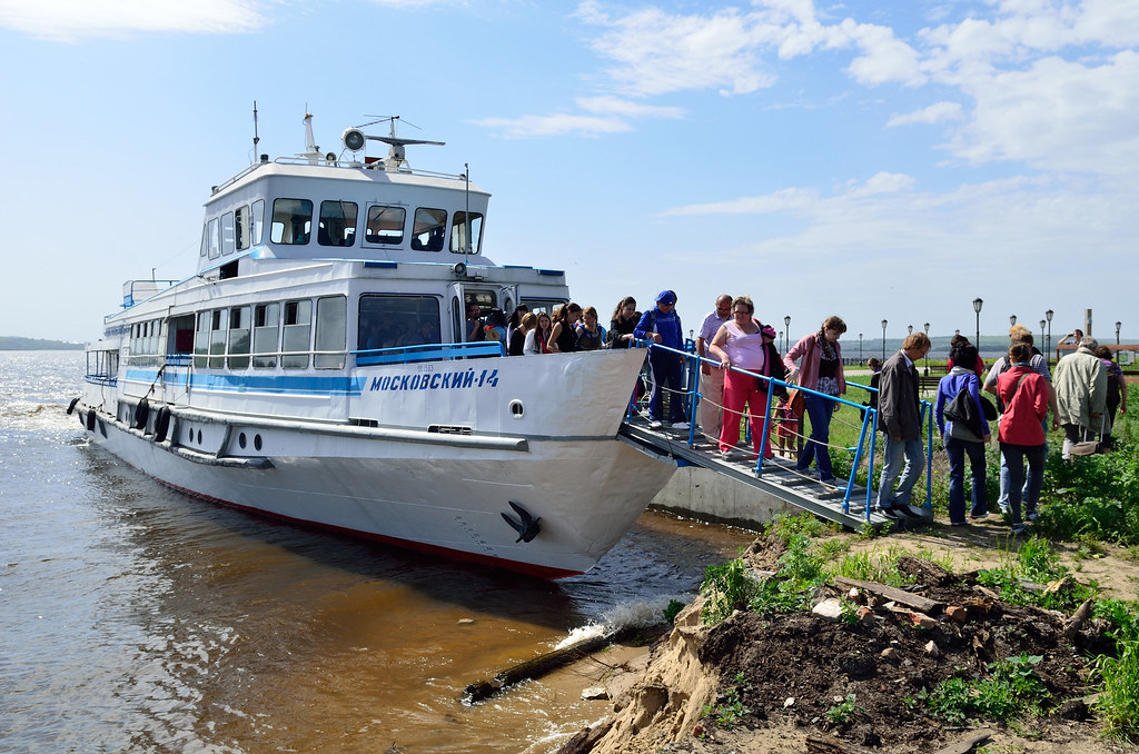 За весь день сюда только утром прибывает один теплоход, стоит до  вечера и отправляется назад в Казань. В каком-то смысле это событие дня, и нас уже встречают.
