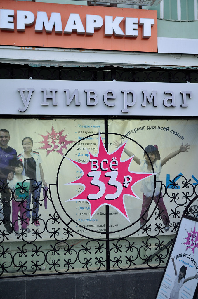 46. Я не сразу сообразил что это такое, почему именно 33 рубля. А потом дошло - да это же доллар-стор! (американо-канадцы поймут)