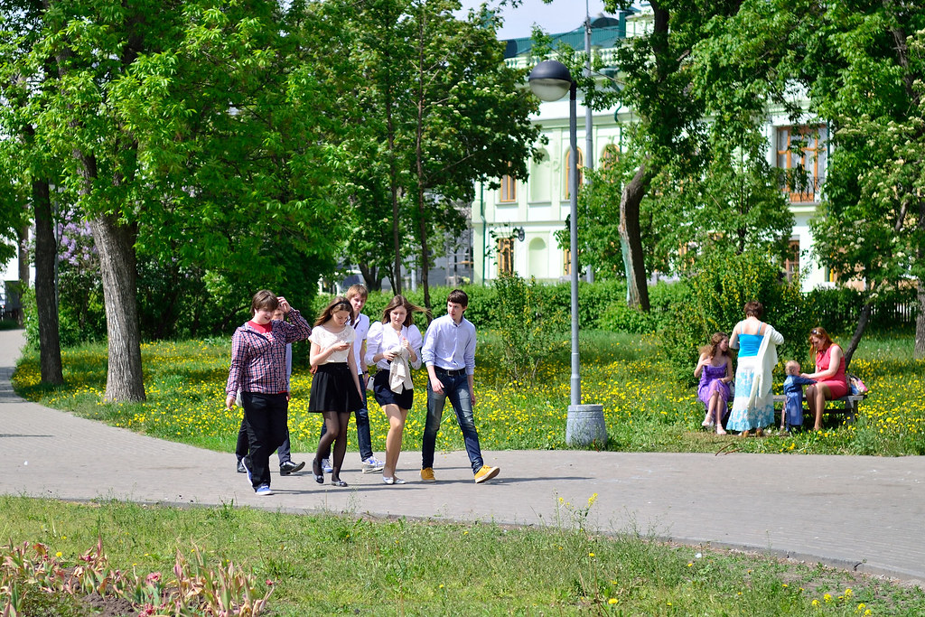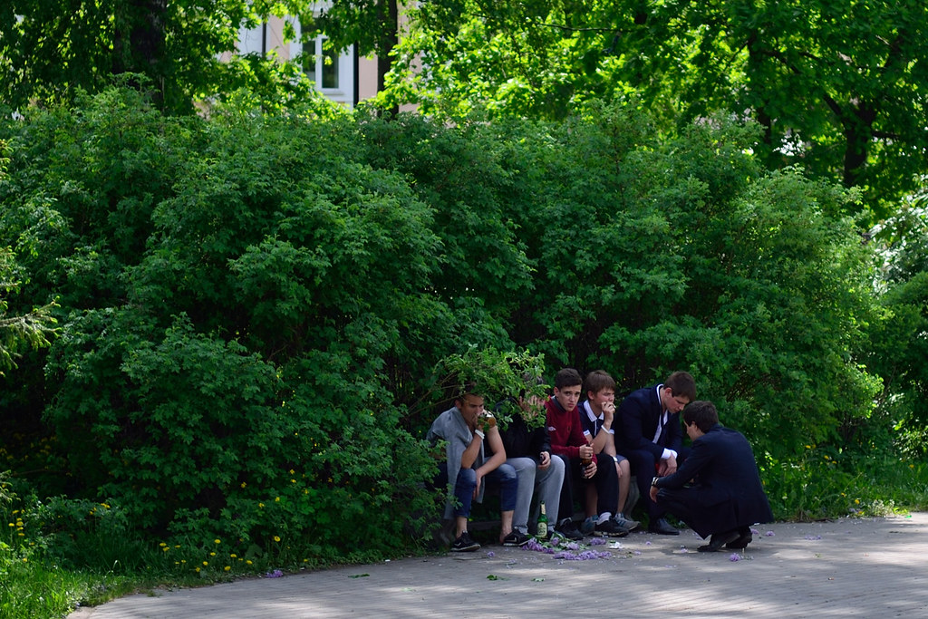 6. Школьники гуляют - у них сегодня последний звонок. Вот эти, наверное, двоечники. Нервно курят с саду в ожидании ЕГЭ.