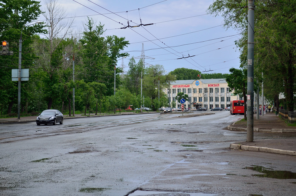 22. Улица Портовая и Автовокзал. Слева - парк Молодоженов. Деревья в нем теоретически посажены молодоженами 60-х. Я в нем тоже однажды посадил пустившую в банке корни веточку вербы, но безо всякого такого повода.