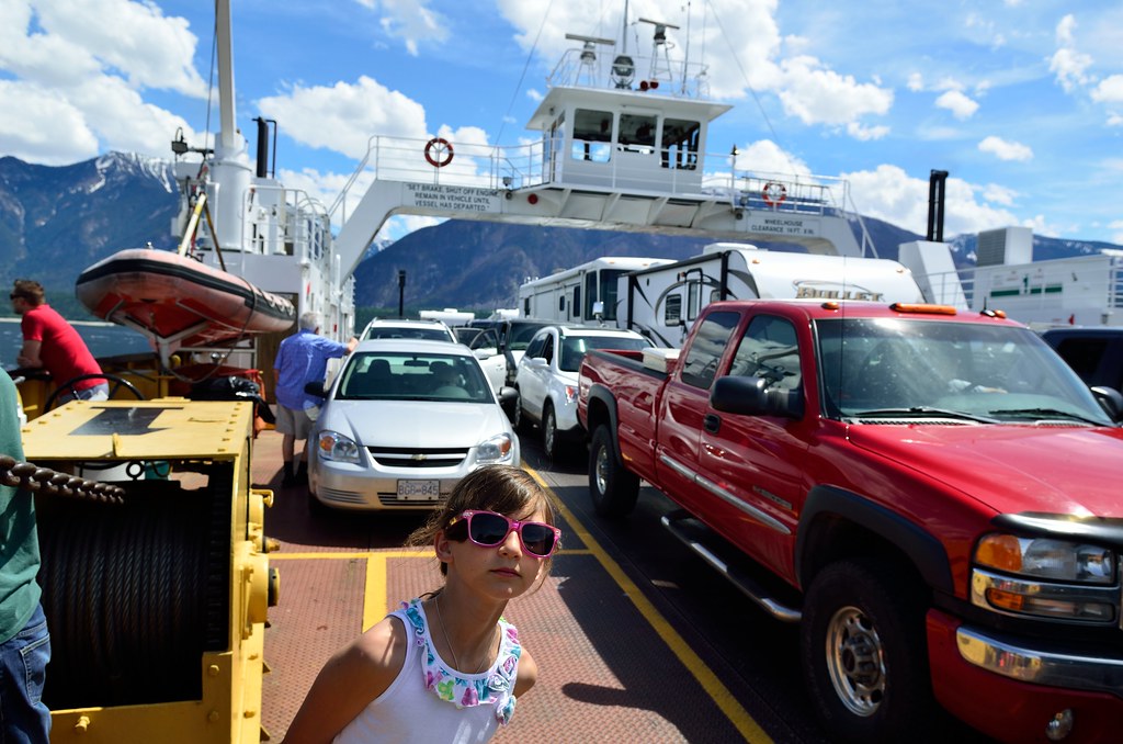 Обратно ехали через Revelstoke, озеро пересекли на пароме.