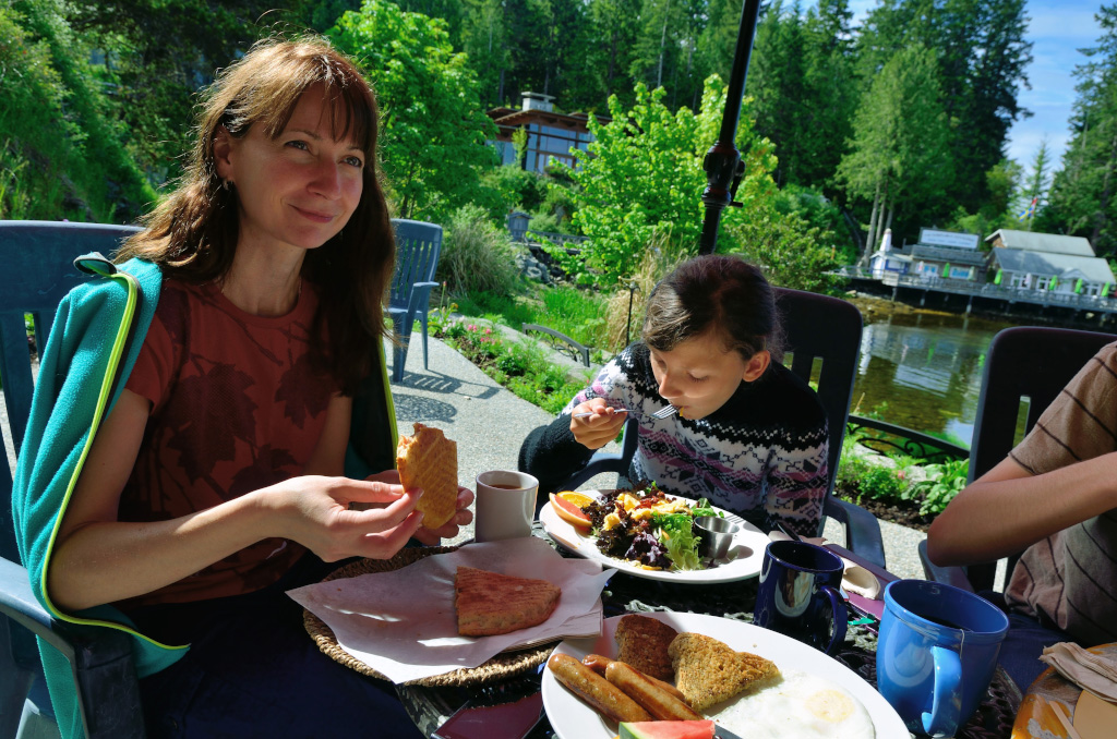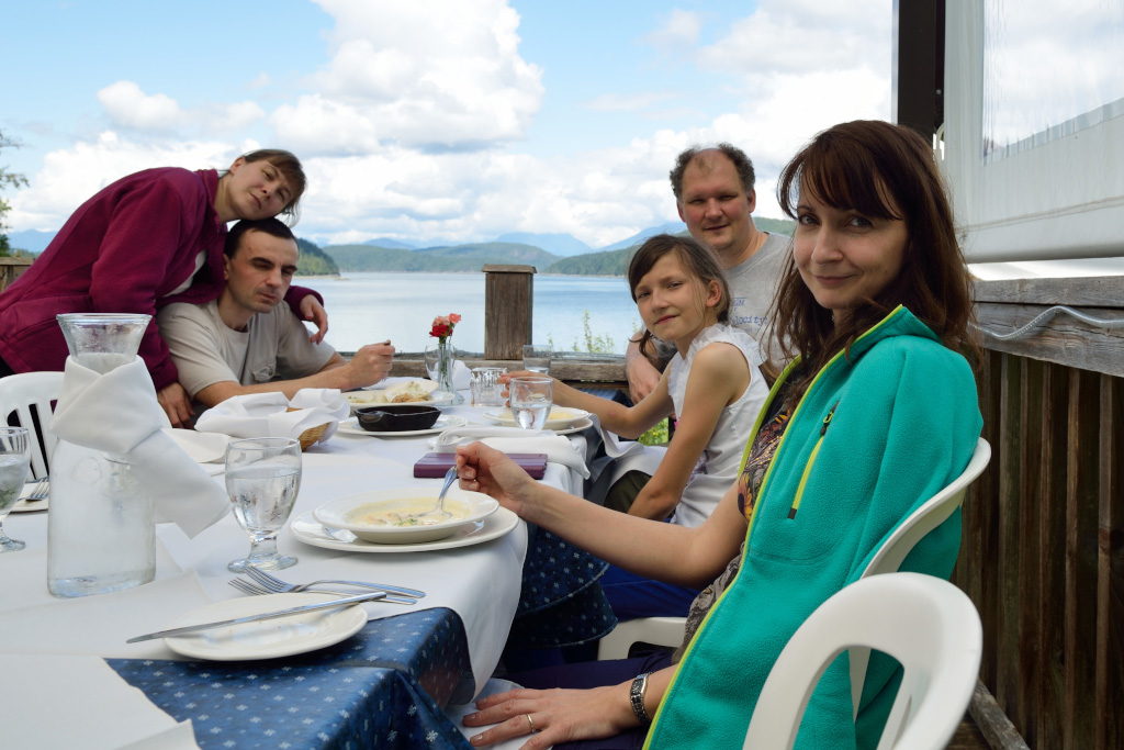 Вечером поехали в Lund на ужин в ресторан The Boardwalk. Как-то так получается, что у Вовы всегда в это время случается день рождения, ну а мы его поздравляем. В тот вечер я забыл фотоаппарат и не фотографировал, а потом и вовсе все выпили стемнело, так что фотка сделана на следующее утро, когда мы опять приехали в Lund позавтракать.