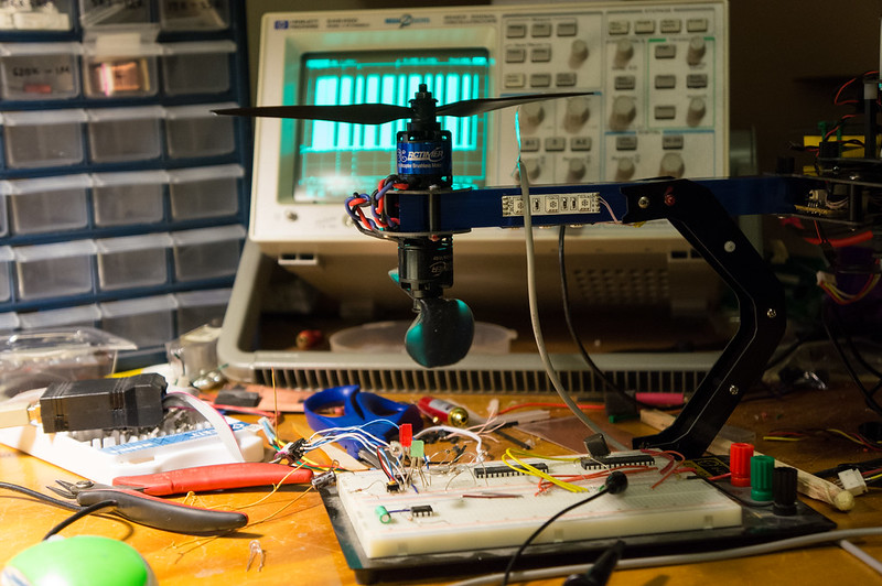 Проект коптера развивается, и деньги из семейного бюджета успешно осваиваются. Поставил контроллер на дизайнерскую амортизационную платформу. King bed, практически.