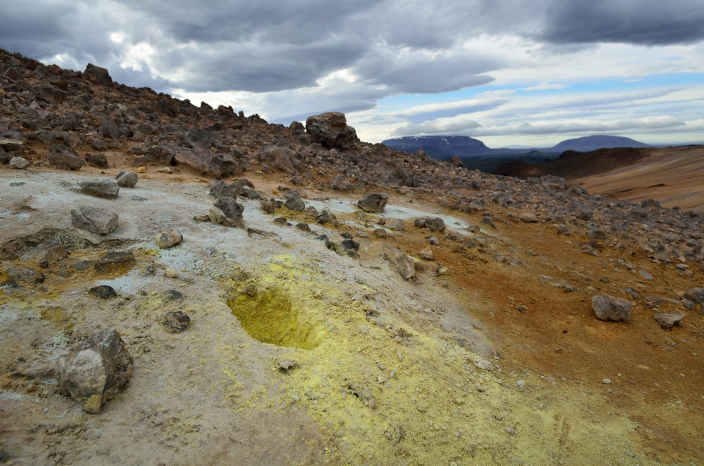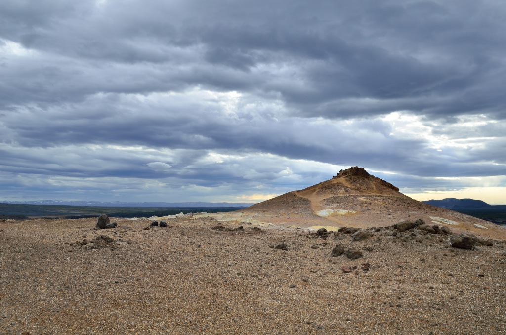 Одна из вещей, которую нам непременно хотелось попробовать в Исландии, это ржаной хлеб Rúgbrauð, который пекут закапывая тесто в горячий грунт. Пишут, что глубоко закапывать лень, и из-за относительно невысокой температуры этот хлеб печется почти сутки, в результате карамелизируется и становится сладковатым на вкус. Нам очень хотелось посмотреть где исландцы пекут такой хлеб. Одно из таких мест, согласно данным разведки, находится около озера Myvatn. Однако точных координат найти не удалось. Поймав одного из аборигенов за пуговицу, долго выпытывали секрет, и получили обведенное кружочком место на карте где-то в районе горы Namafjall. Выдав Плохишу корзину варенья и бочку печенья, отправились в указанную точку.
