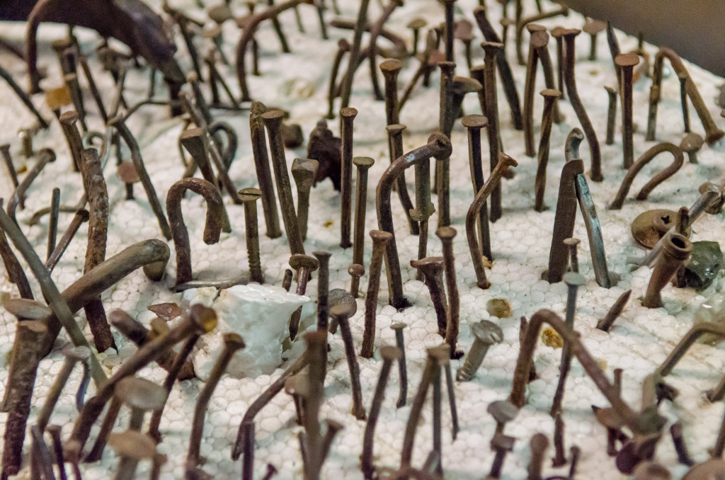 Здесь есть даже редкая коллекция гнутых гвоздей, поразившая нас не меньше автомобилей. Людей бы делать из таких гвоздей!