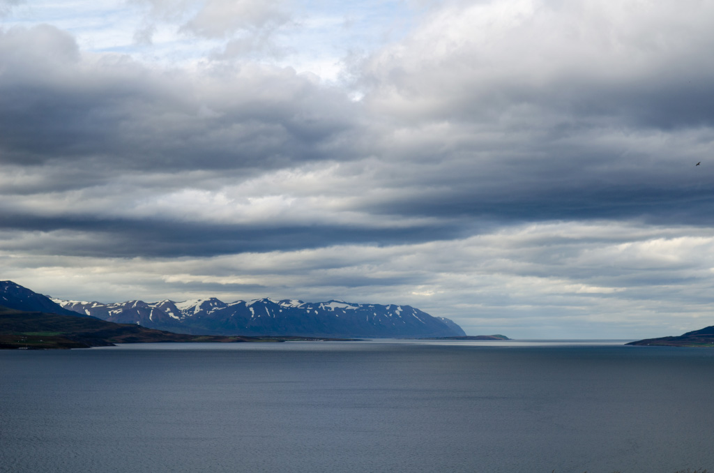Eyjafjörður - самый длинный фьорд Исландии - 25км. Очевидно, что я слазал за этими сведениями в Википедию, но кроме этой информации там о заливе нет ничего интересного. Гуглмапс помог определить, что там впереди Норвежское море и Северный Полюс. Вот и все крохи той информации, что удалось собрать об этом интересном месте.