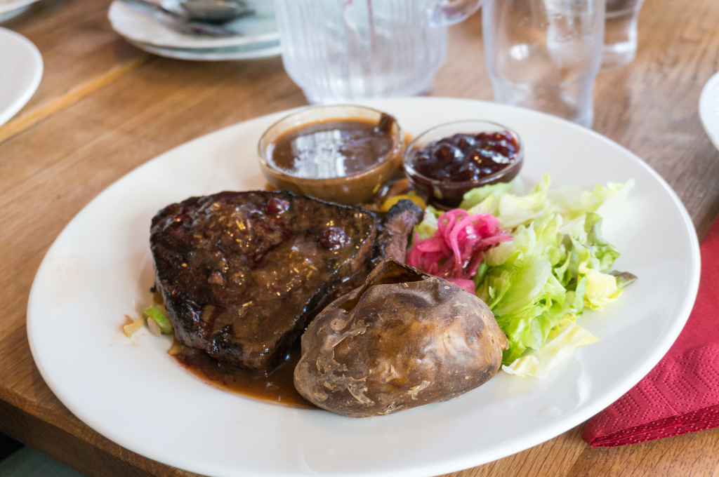 Покушали в ресторанчике Bautinn. Очень приятное место. Мы с Димой взяли китовый стейк. Ну что сказать тебе про Сахалин? Как жесткая говядина с привкусом тунца... Лена взяла ягнячью ногу и была более права в этом выборе.