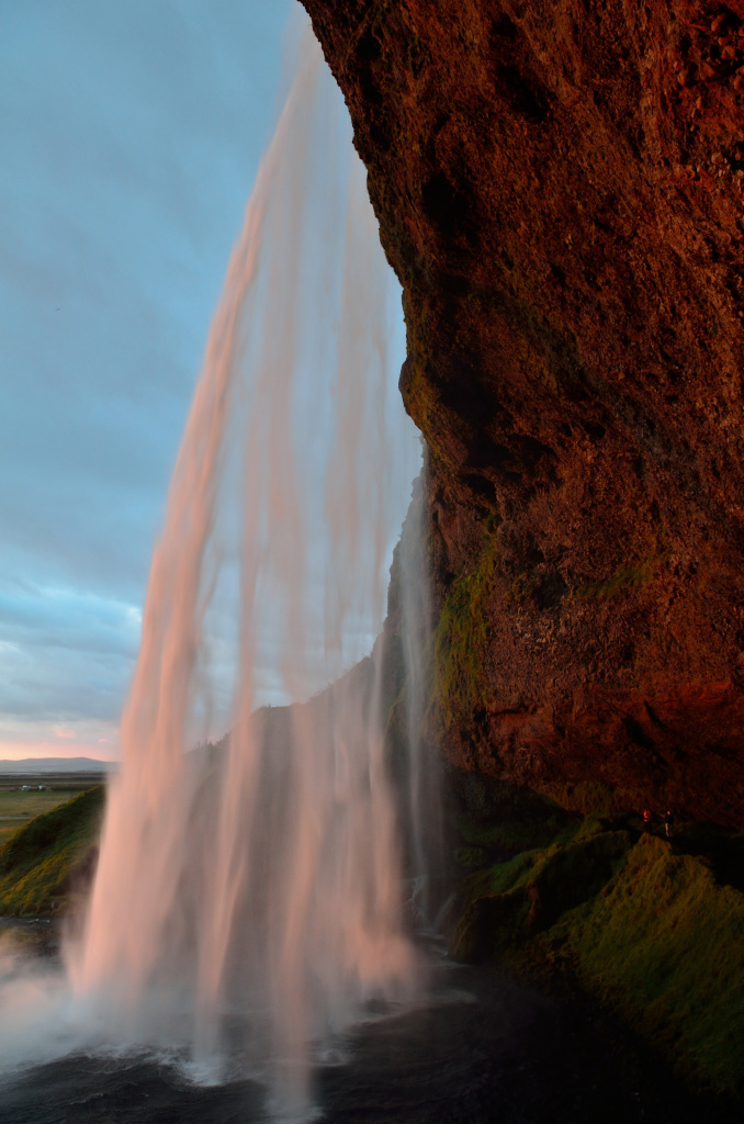 Успели! Водопад Seljalandsfoss в лучах закатного солнца.