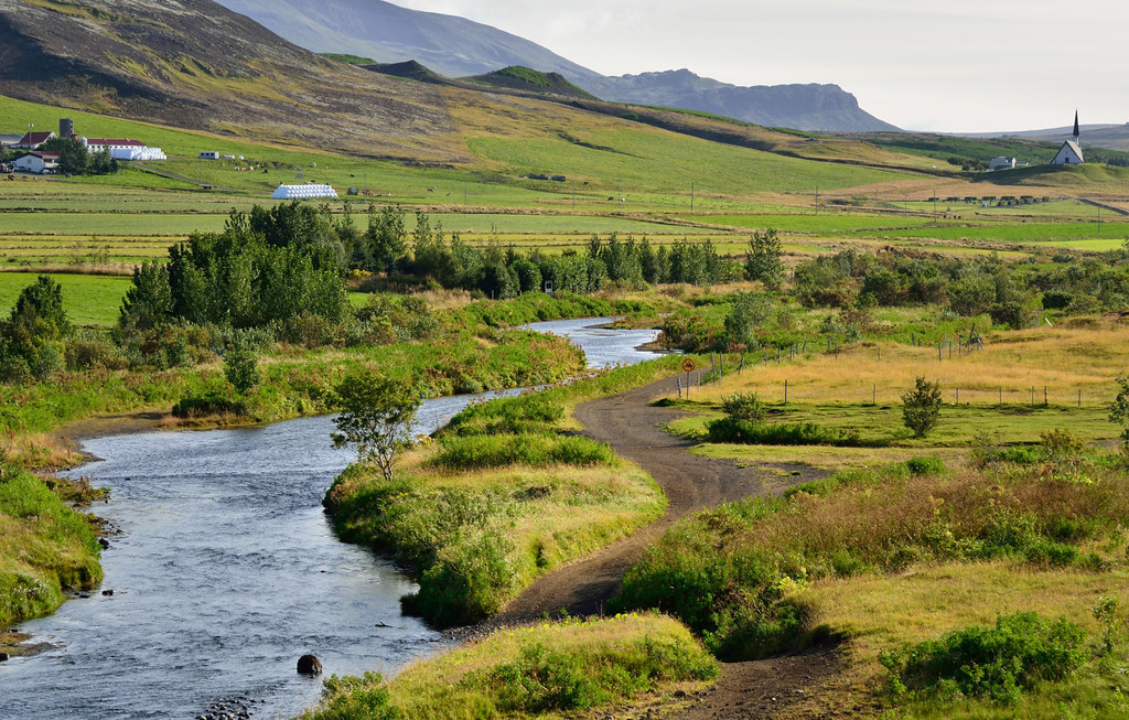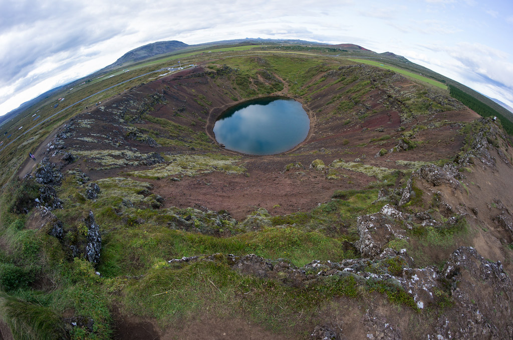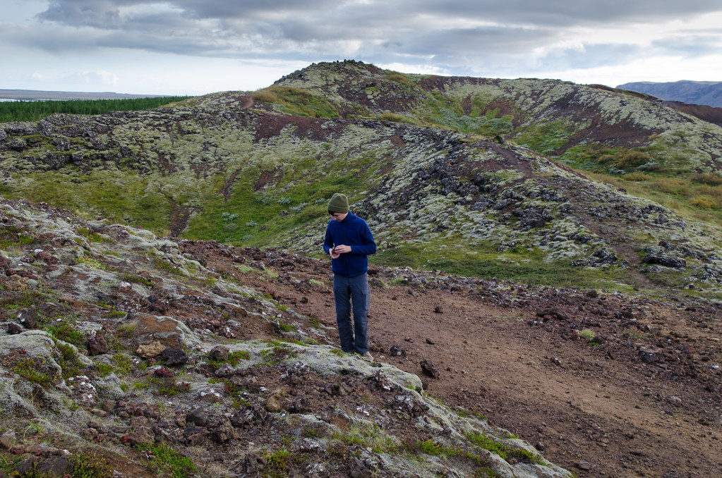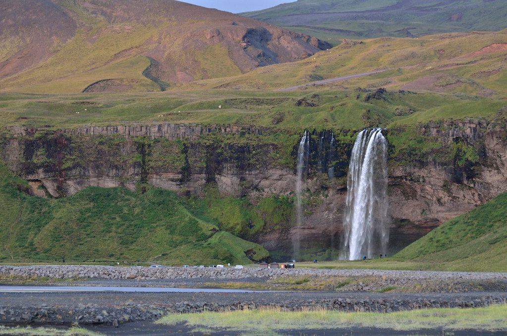 Продолжаем двигаться на юг. Вечереет. Начинаем понимать, что все из намеченного посмотреть не успеем. Надо жертвовать или кратером или горячим источником. Справедливо рассудив, что в следующем месте ночлега (Skógar Guesthouse) нас так и так ждет горячая джакузи, заполненная той же натуральной водой из источника, мы выбираем кратер.