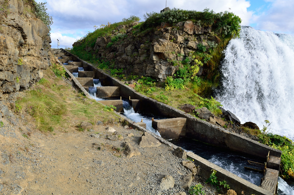 Для рыбы-лосося сбоку сделана лесенка, благодаря которой ей легче преодолевать пороги. Может быть у этой конструкции и другое предназначение, но эта версия кажется наиболее логичной.