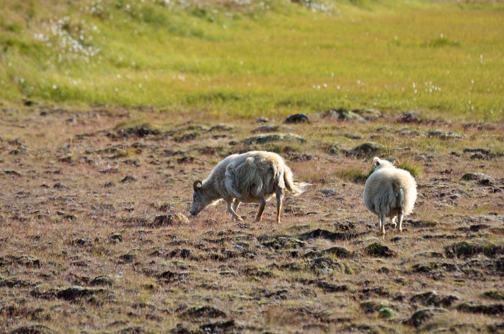 Помимо лошадей, на травяных склонах в изобилии встречаются овечки. Хозяева выпускают их пастись в горы не ограничивая в свободе, а потом раз в год как-то разыскивают и стригут, превращая их шерсть в свитеры.