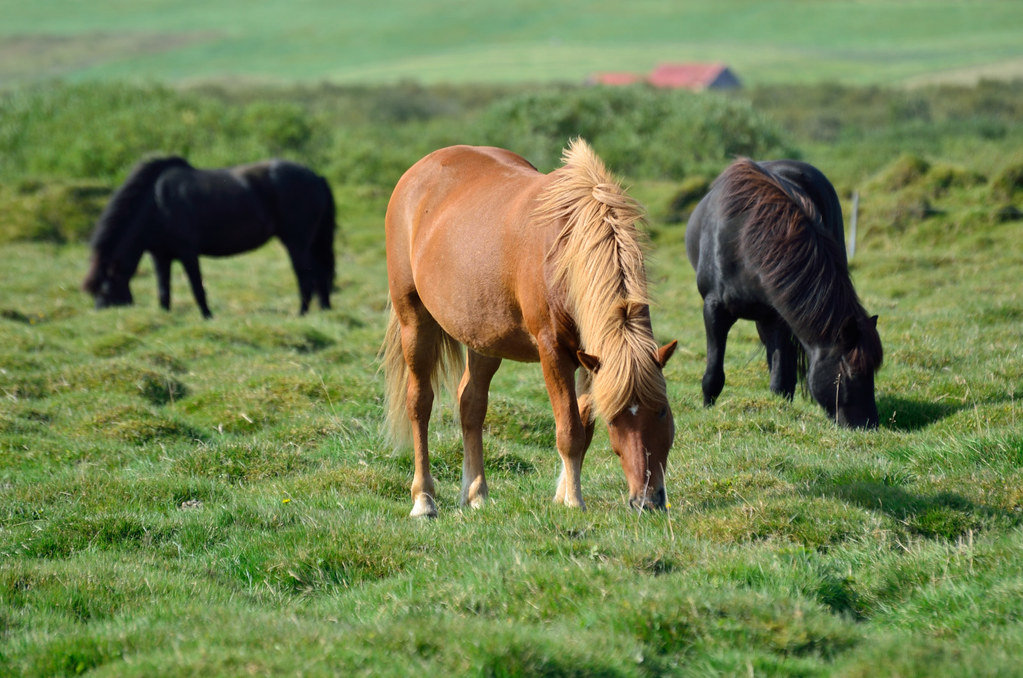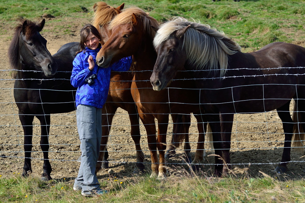 Практически сразу мы увидели первых в нашей жизни исландских лошадей. Тут надо сделать небольшое отступление. Эти лошади действительно особые. Их когда-то привезли в Исландию викинги, причем выбирали с собой самых лучших, и с тех пор эта порода сохранялась в изоляции. До сих пор импорт лошадей в Исландию строго запрещен. Лошадь может уехать из страны, но обратно ее уже не пустят. Помимо своей красоты, эти лошади умеют бегать особенным стилем, которым не умеют бегать их сородичи из других стран и ценятся за это (так и хочется перефразировать: лошадь может уехать из Исландии, а вот Исландия из нее - нет). Катание на лошадях было важнейшей частью нашей программы, так же как и их фотографирование.