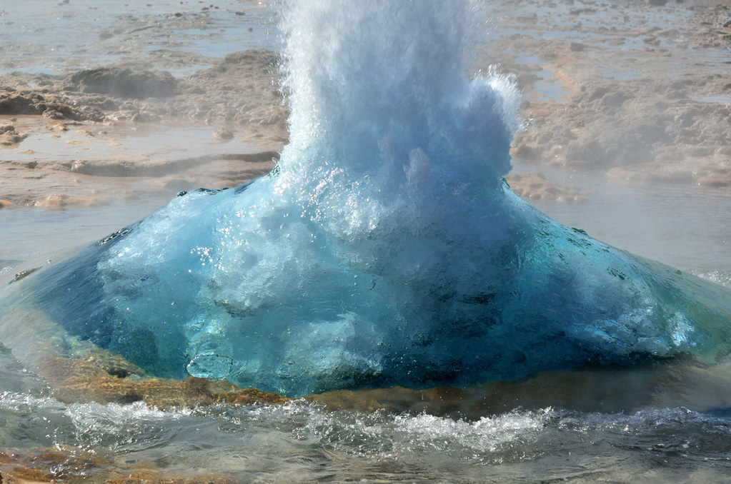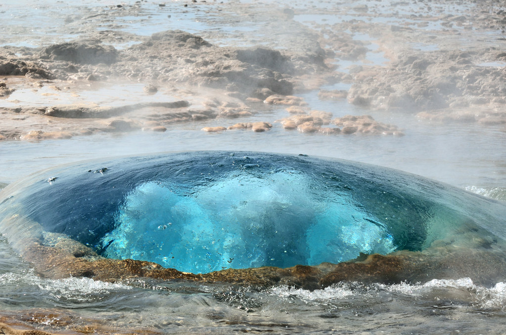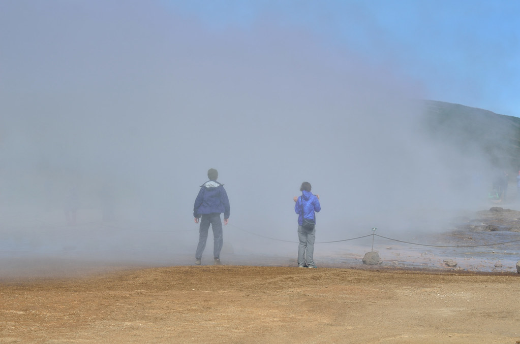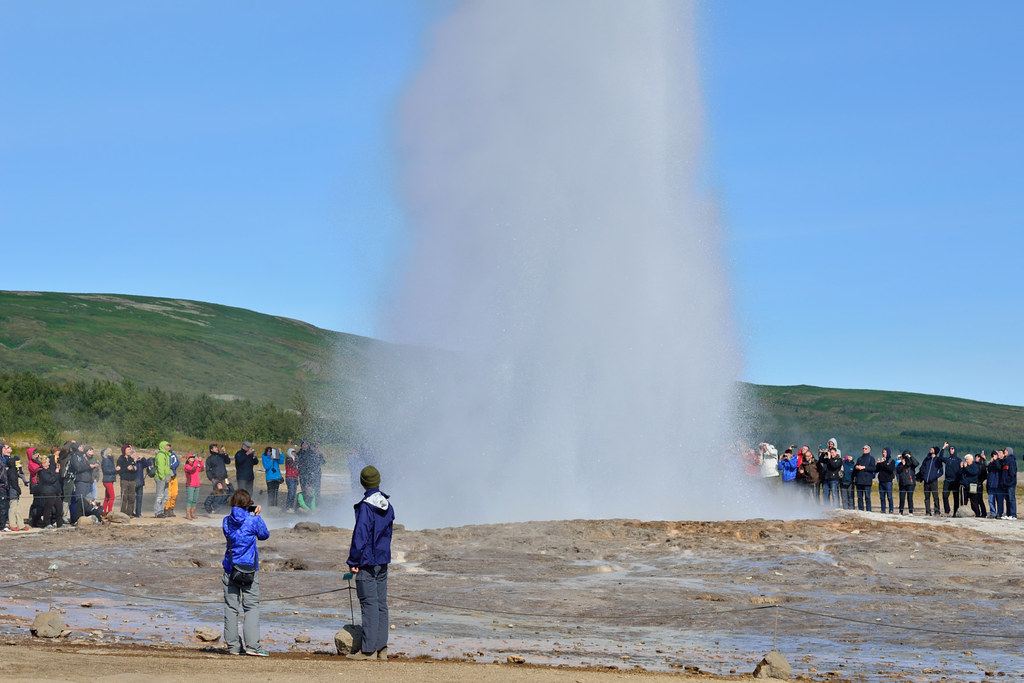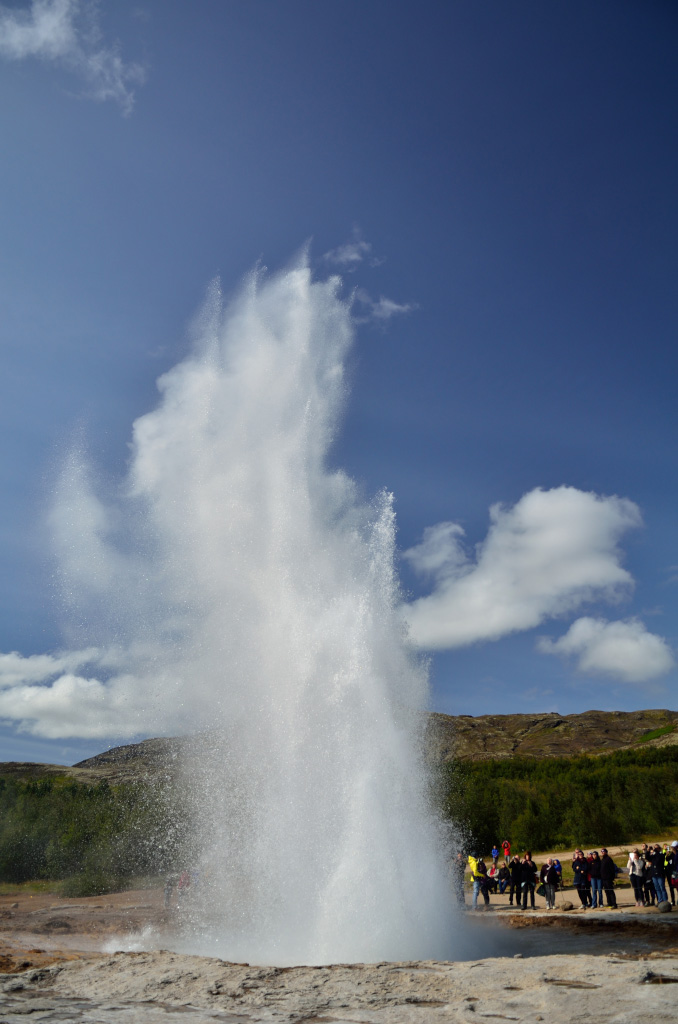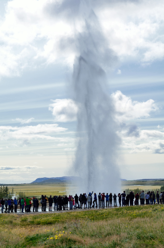 Следующим пунктом программы было посещение парка Geysir c единственным на всю страну действующим гейзером Strokkur. Хотя как единственным... небольших, напоминающих кастрюлю с кипящей водой хоть пруд пруди. А такой, чтобы выбрасывал струю на десятки метров вверх - один.