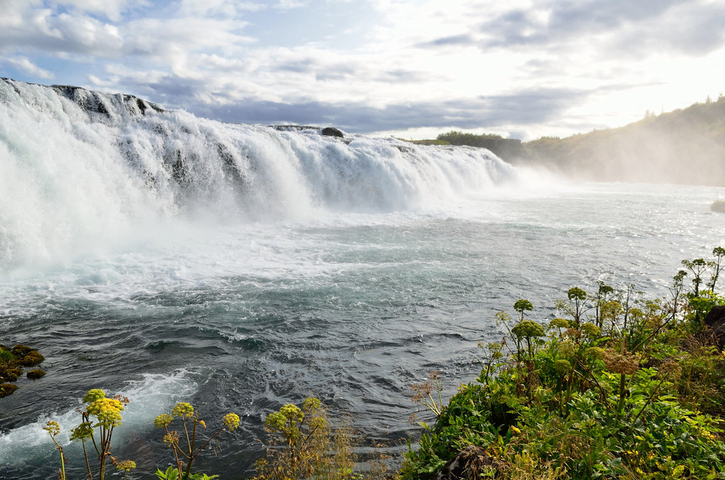 Возвращаясь к побережью на юг, можно проехать мимо, а можно и остановиться поглядеть на водопад Vatnsleysufoss. Красивый! Там же есть ресторанчик, если кто-то таки пожадничал и не поел супа около Gullfoss, но только выйдет куда дороже.